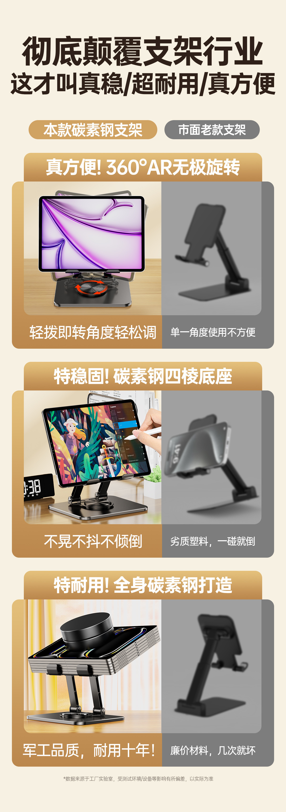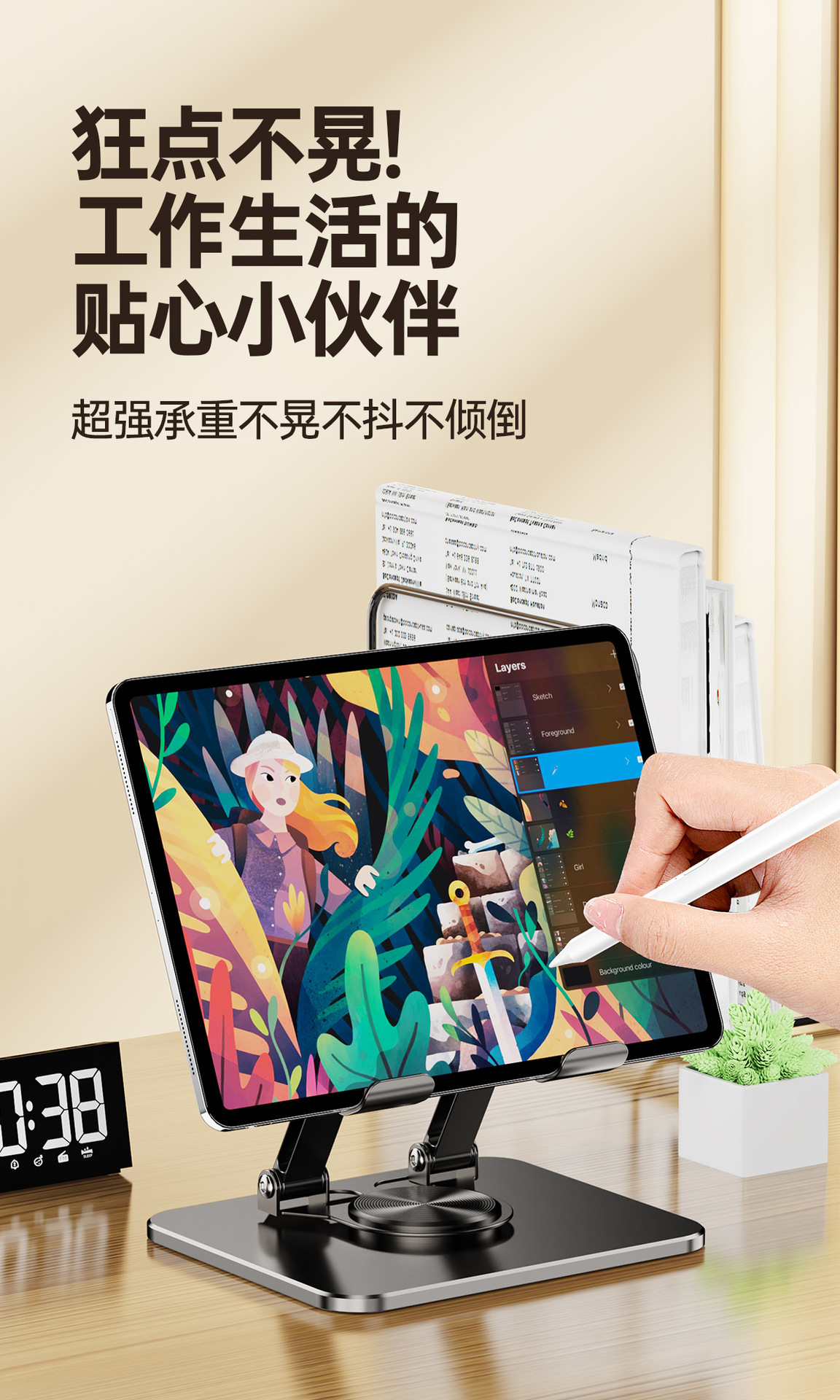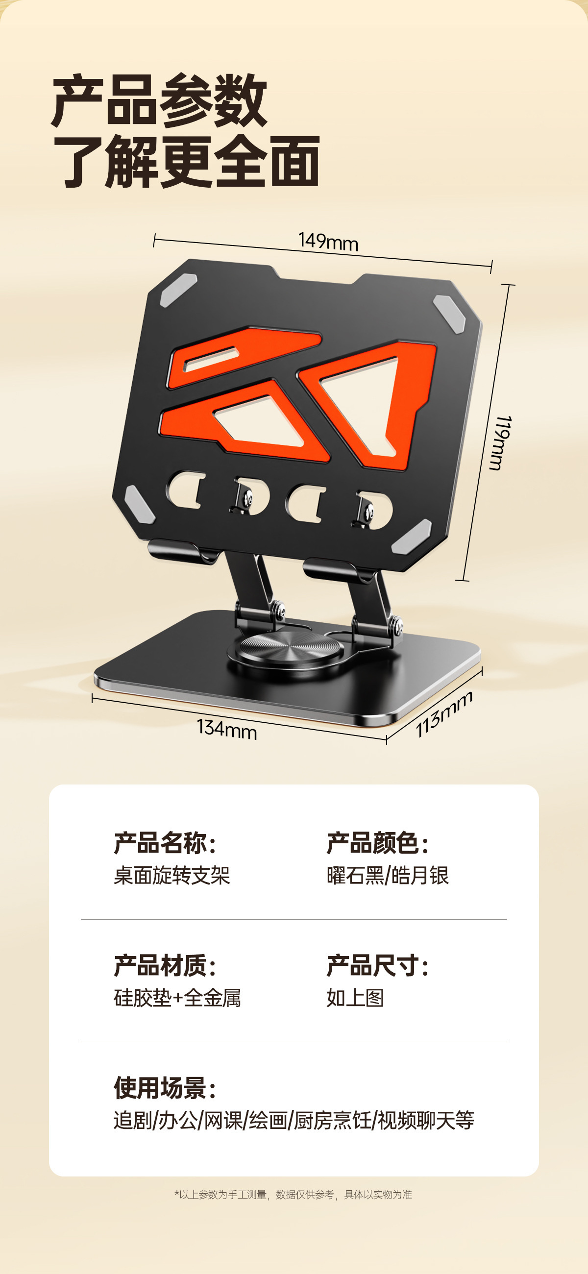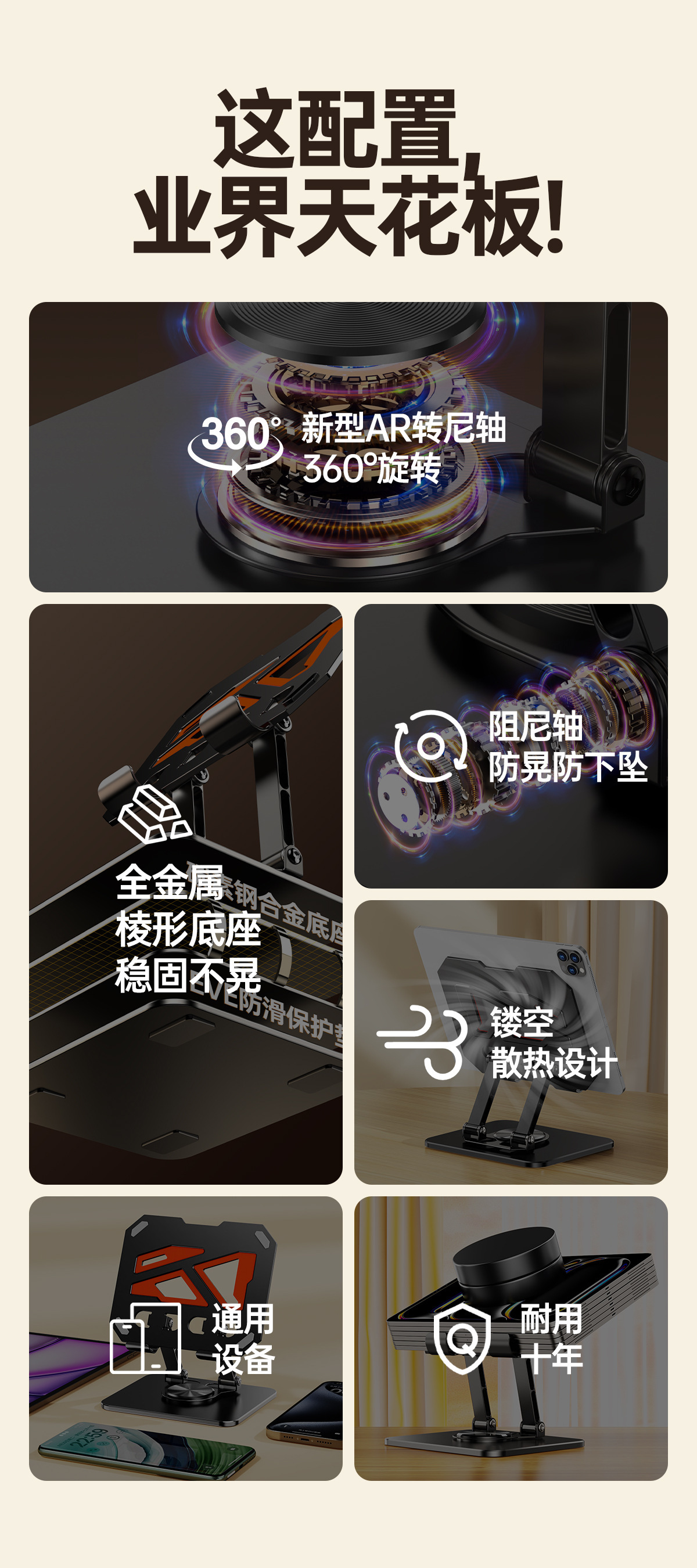 올메탈 컬러블록 데스크탑 회전형 태블릿/노트북 거치대 720 ° 다방향 조절 가능