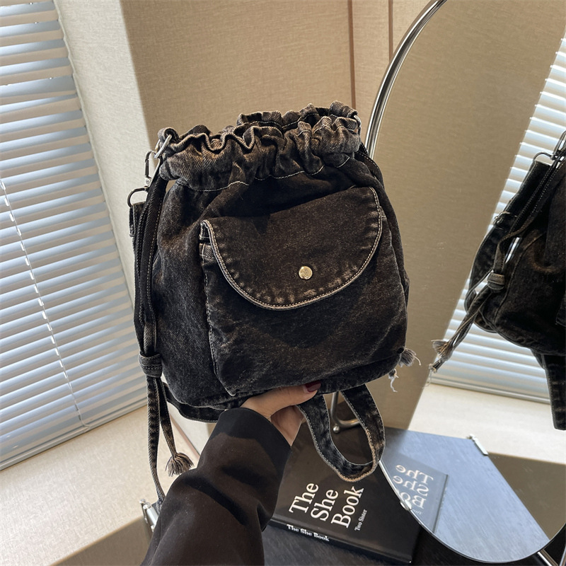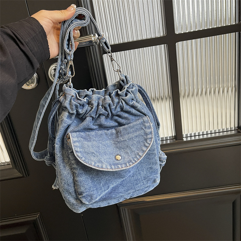 일본 빈티지 데님 작은 가방 패션 천 가방 여성 캐주얼 현악기 거들 여성 가방 학생 어깨 크로스 백스토어 가기