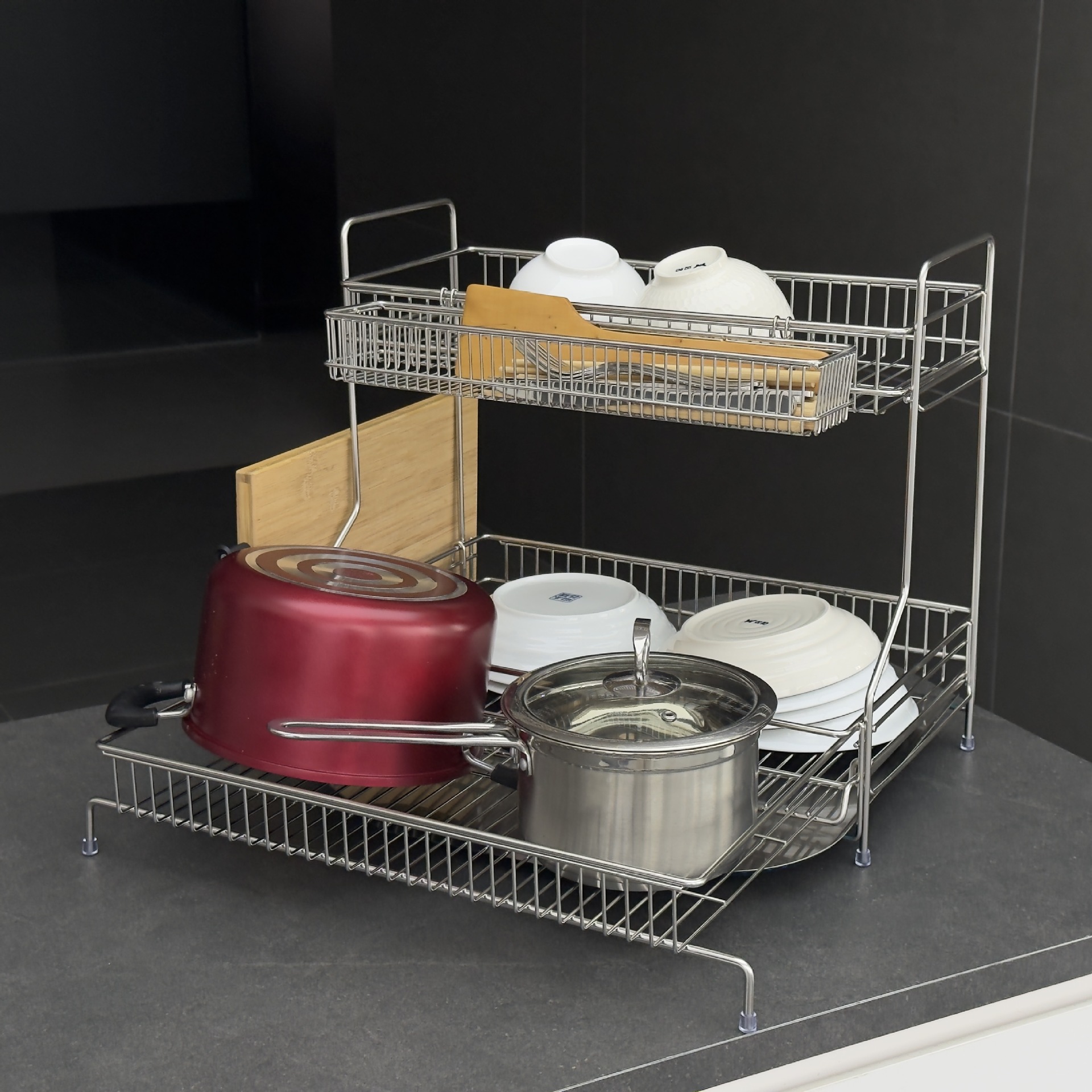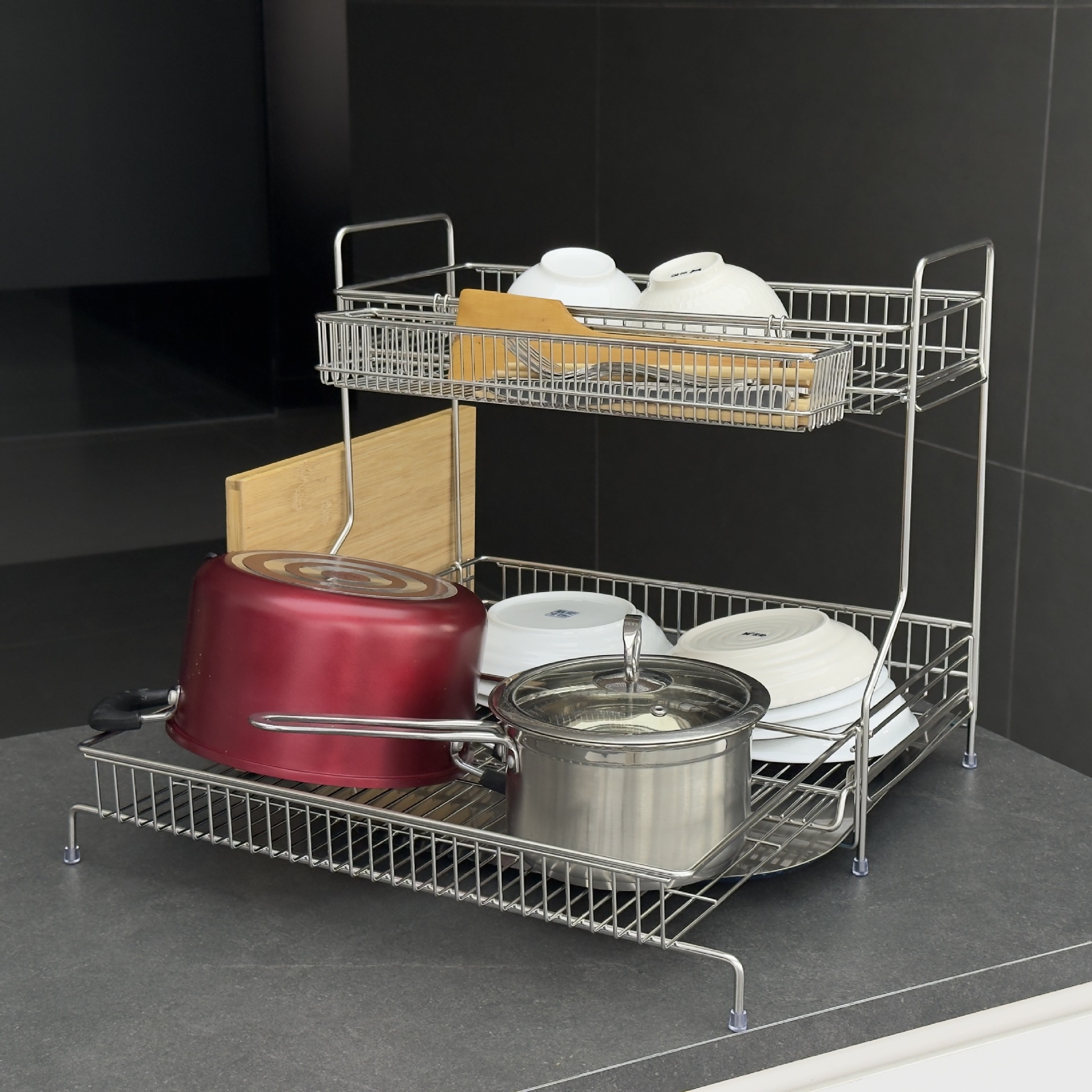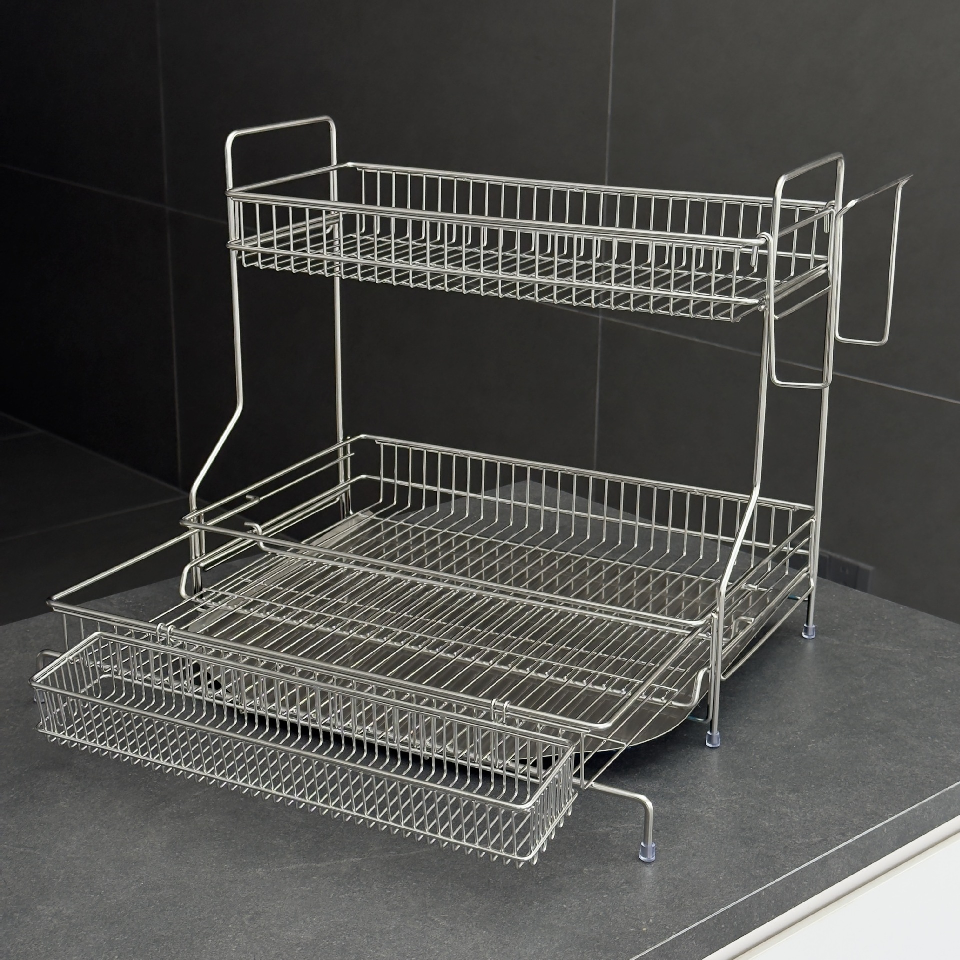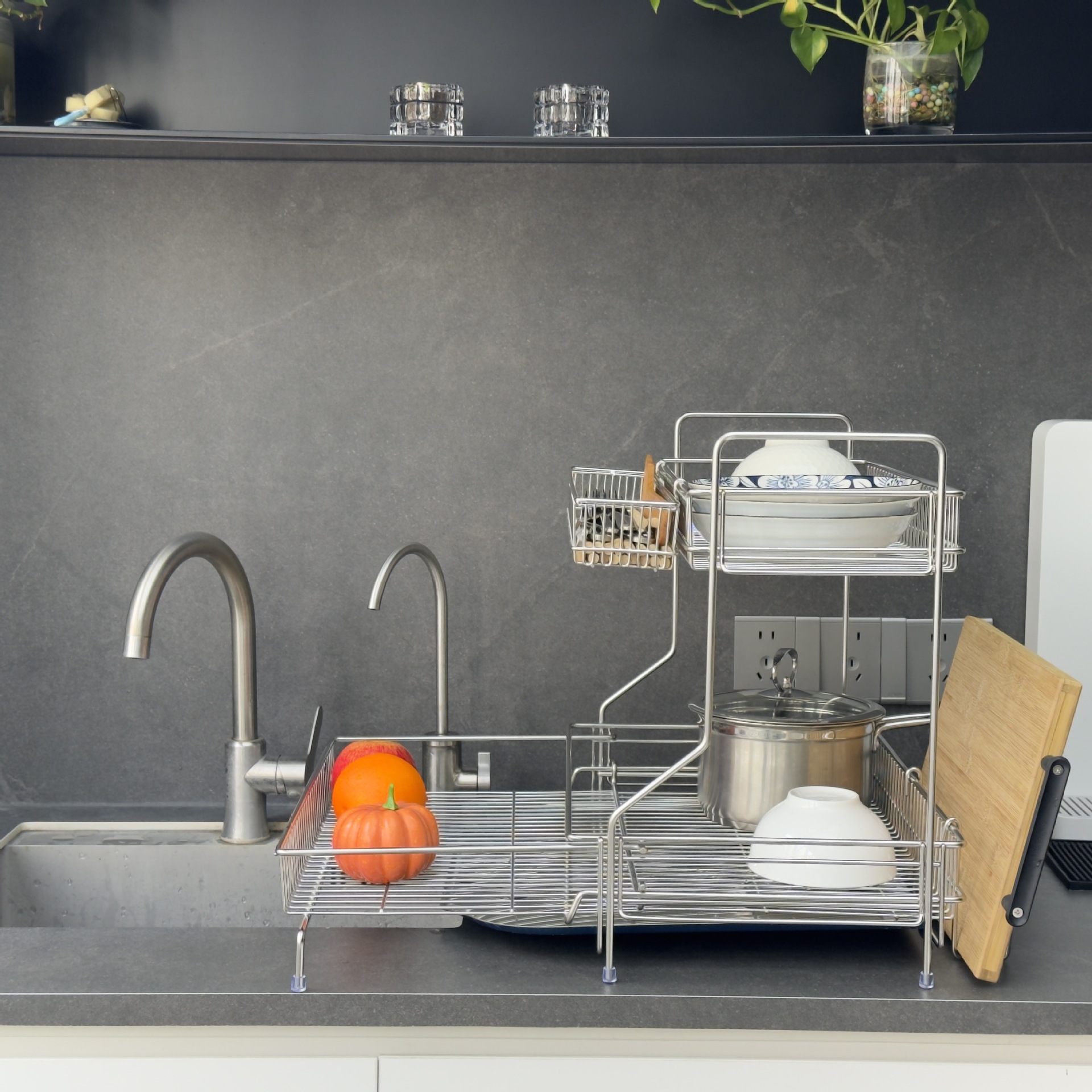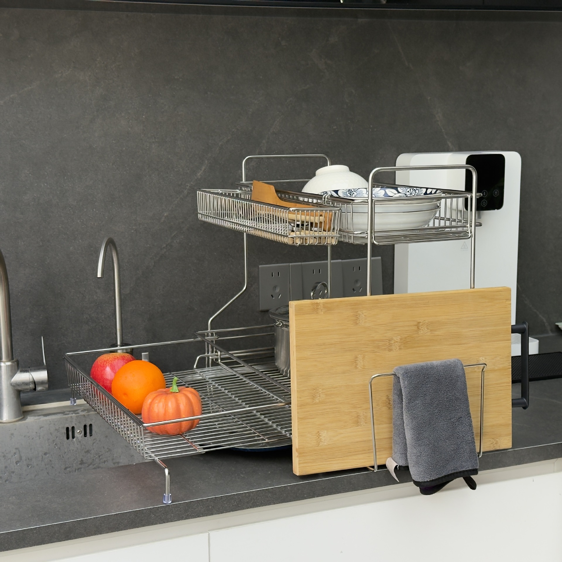 주방 싱크대용 스테인리스 물빠짐 방지 접시걸이, 분리형 주방 수납 선반, 이중 레이어 식기 보관대