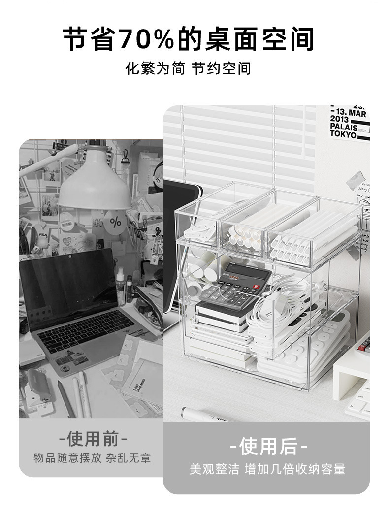 데스크탑 저장 상자 서랍 유형 플라스틱 투명한 다층 문구 주최자 사무실 책상 보관 랙 기숙사스토어 가기