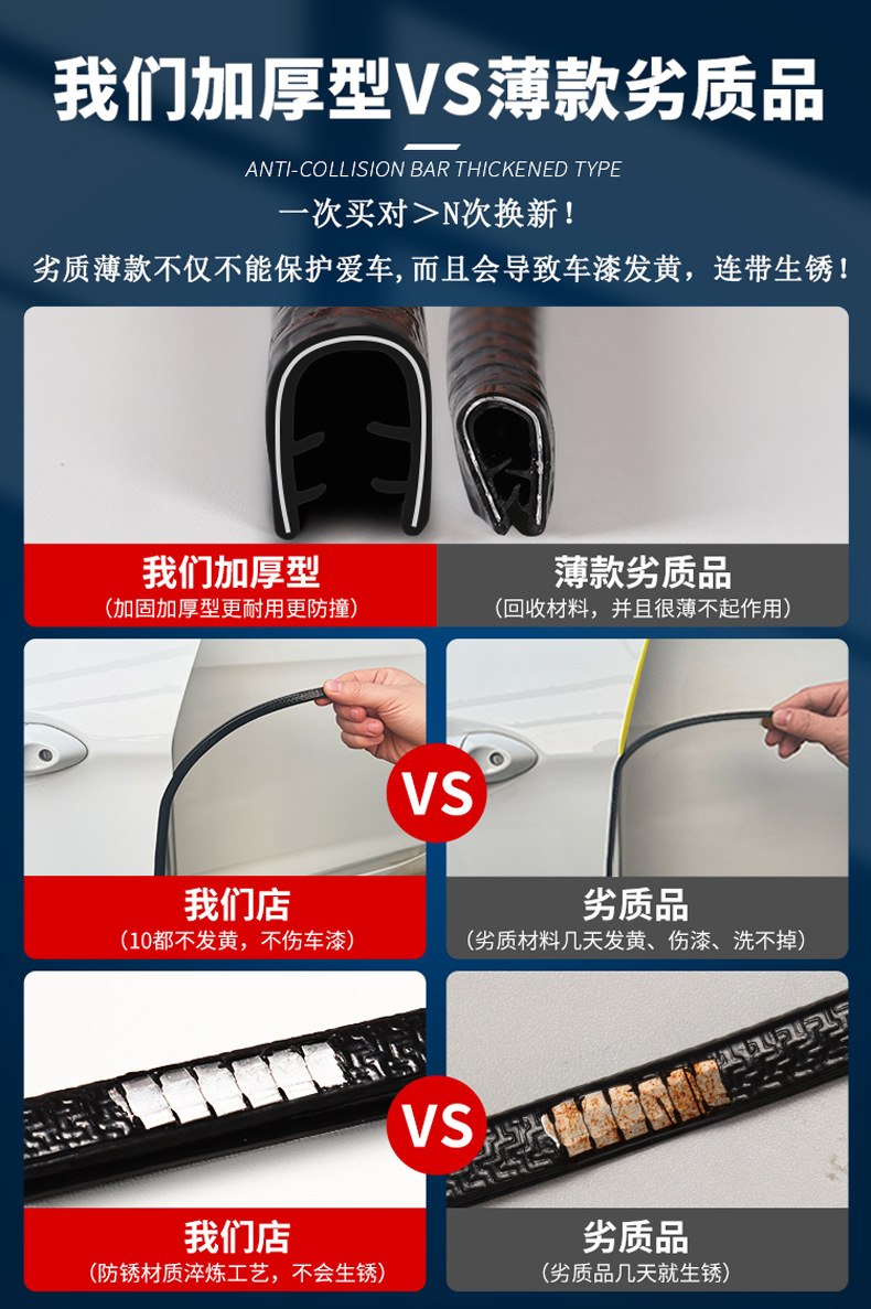자동차 도어 충돌 방지 스트립 유니버설 도어 측면 보호 스트립 페이스트가없는 도어 오프닝 스크래치 방지 및 충돌 고무 스트립 장식 용품스토어 가기