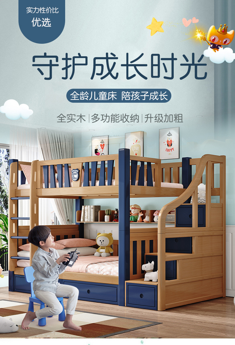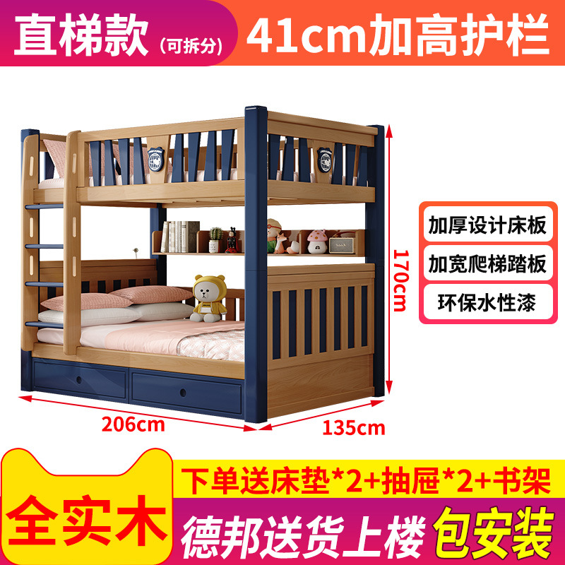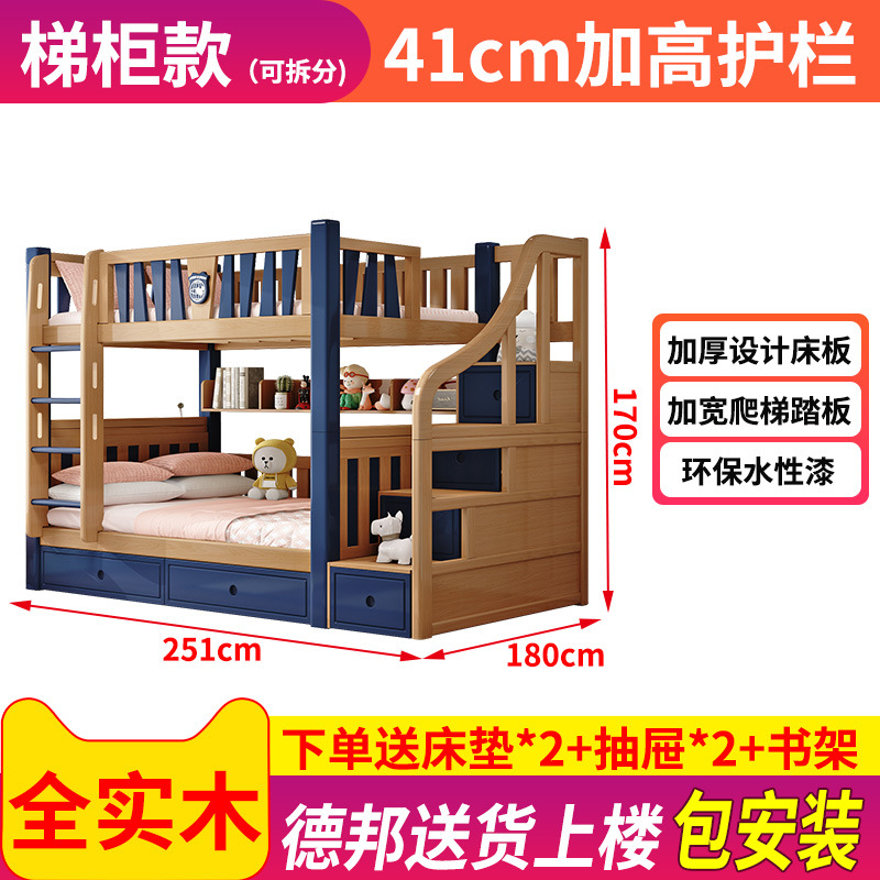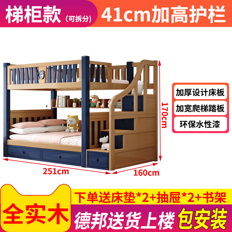 단단한 나무 높고 낮은 침대 어린이 침대 트윈 상하 침대 침대 같은 폭 벙크 침대 풀 솔리드 우드 엄마와 아이 침대 2 층 상하 침대스토어 가기