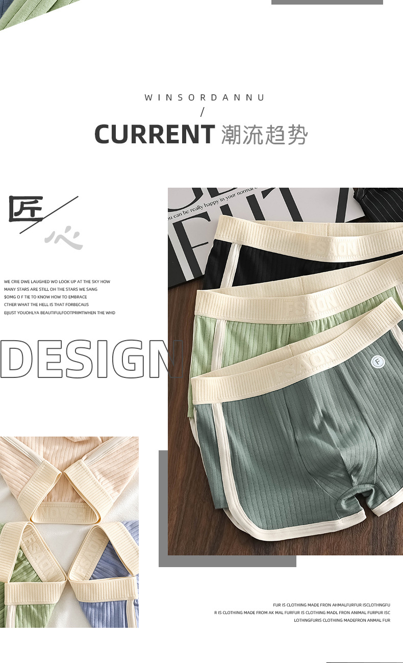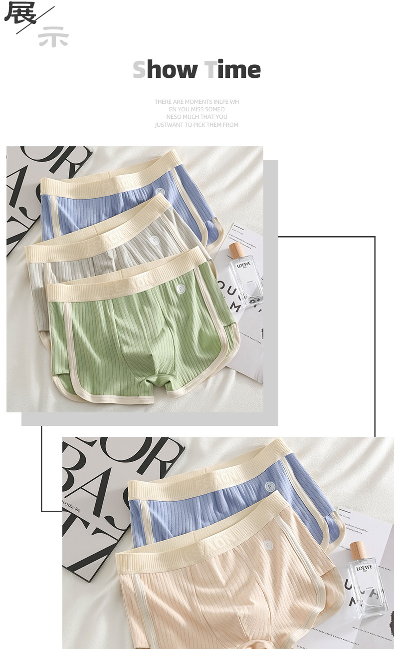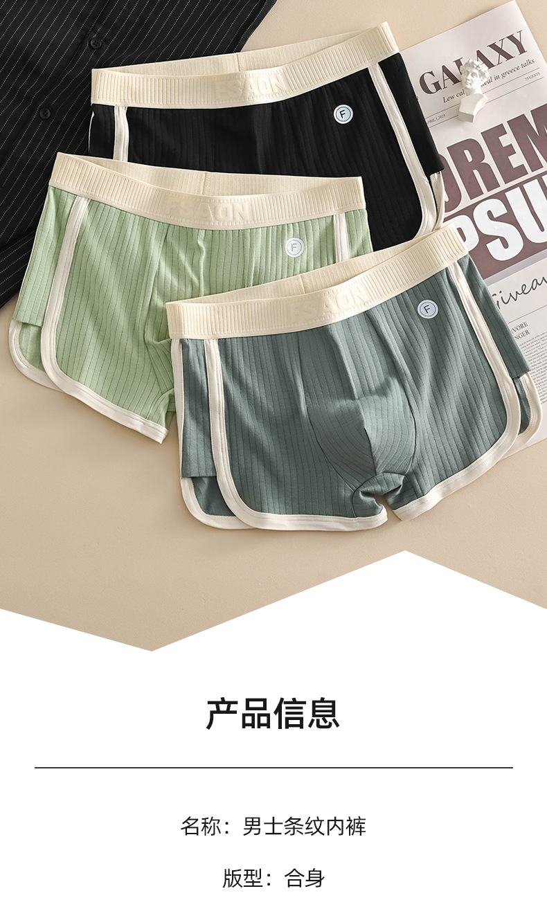 남성용 속옷 남성용 순면 통기성 커브 박스 스트라이프 루즈 박스 중간 허리 독특한 반바지 머리
