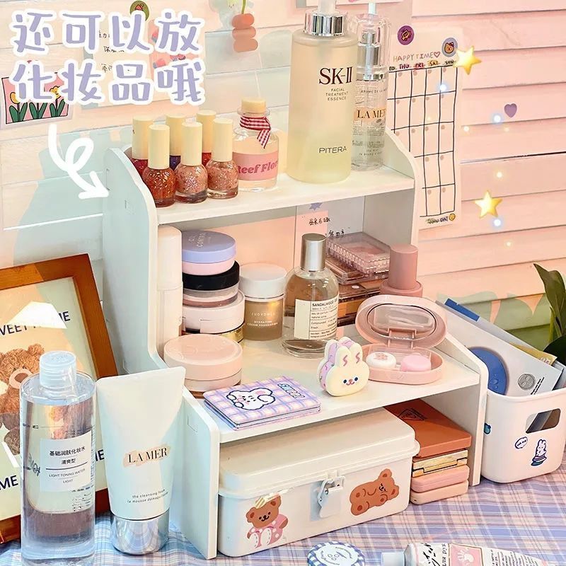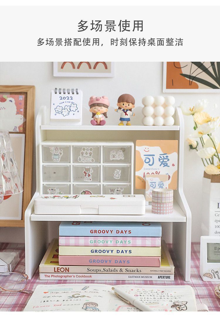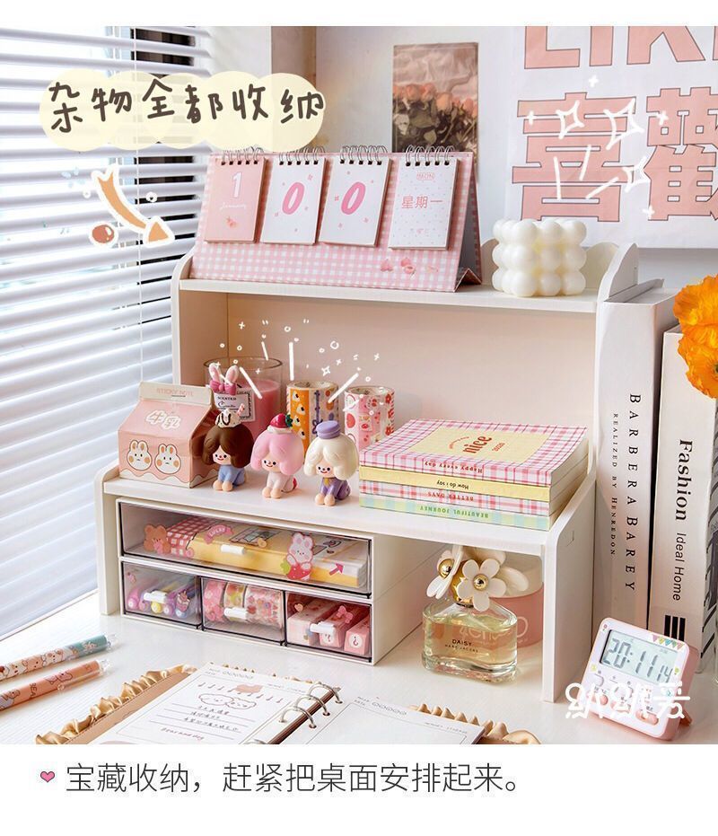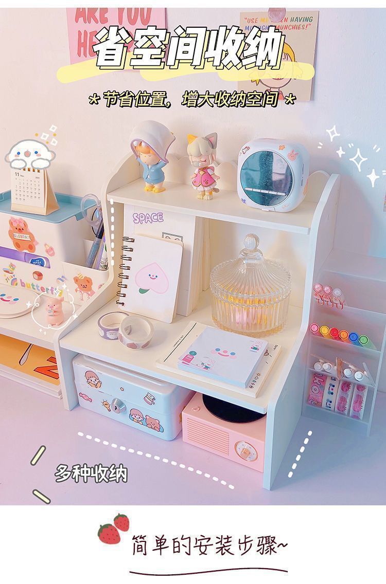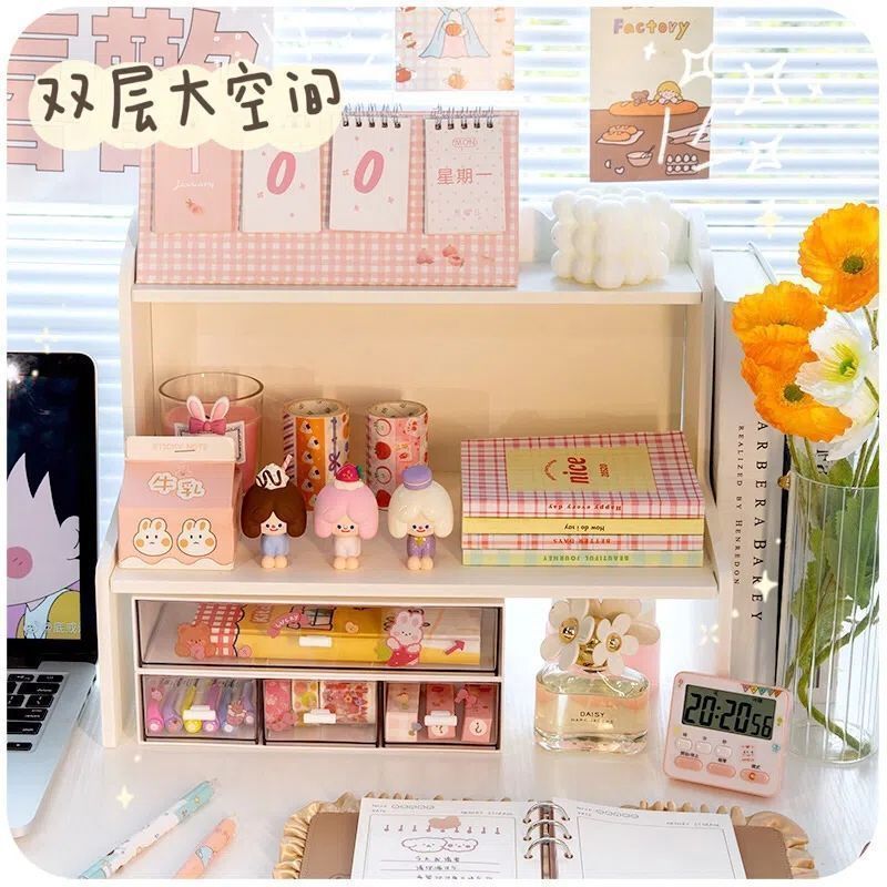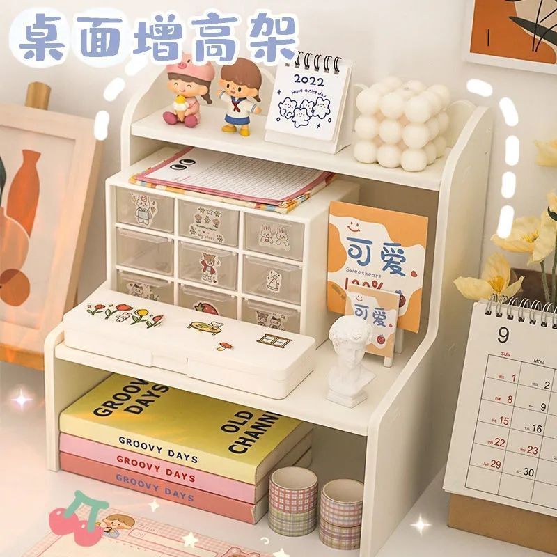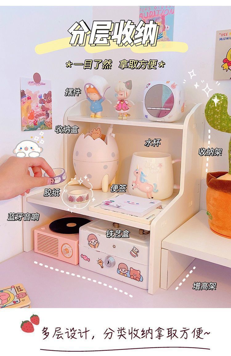 잡화 보관 상자 데스크탑 보관 랙 기숙사 문구 학생 책상 마무리 인공물 이중층 테이블 높이
