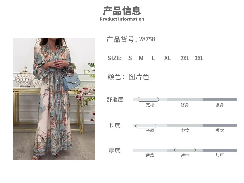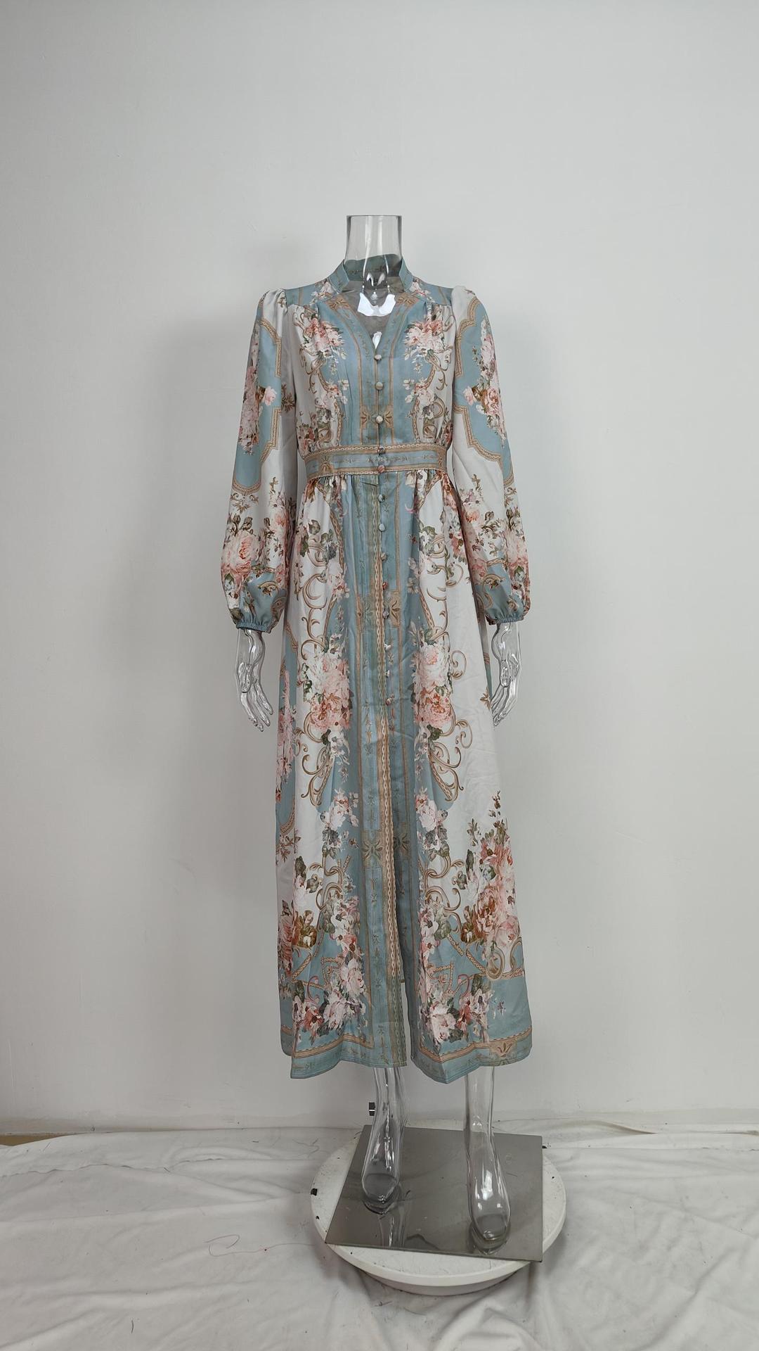 2026년 봄 신상품, 해외 아마존 판매, 유럽 및 미국 여성복, 레트로 스타일 프린트 긴팔, 허리 조임 드레스스토어 가기