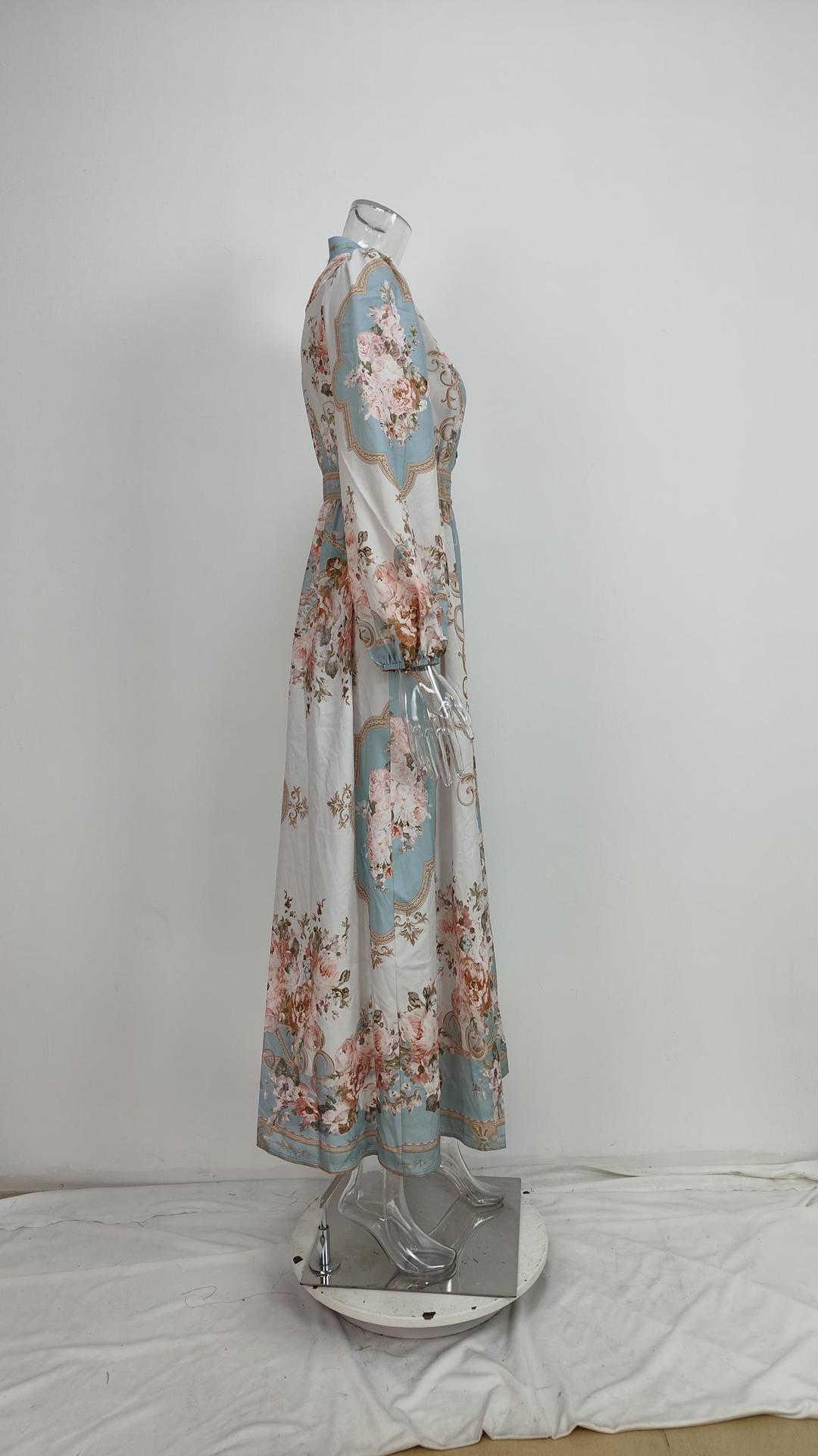 2026년 봄 신상품, 해외 아마존 판매, 유럽 및 미국 여성복, 레트로 스타일 프린트 긴팔, 허리 조임 드레스