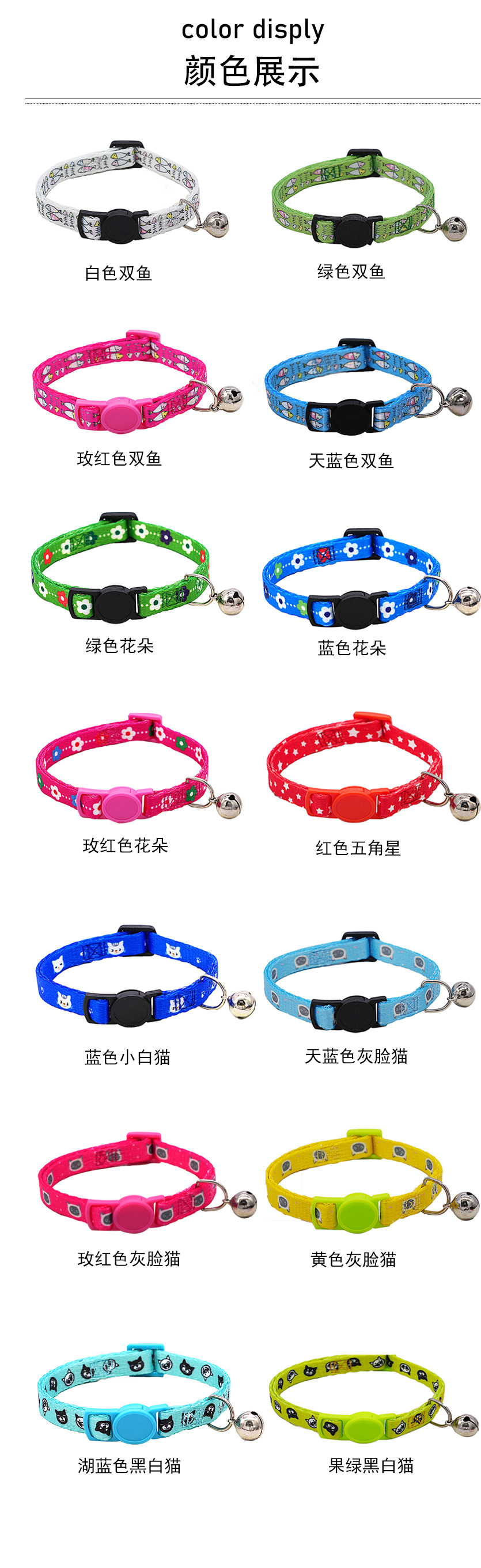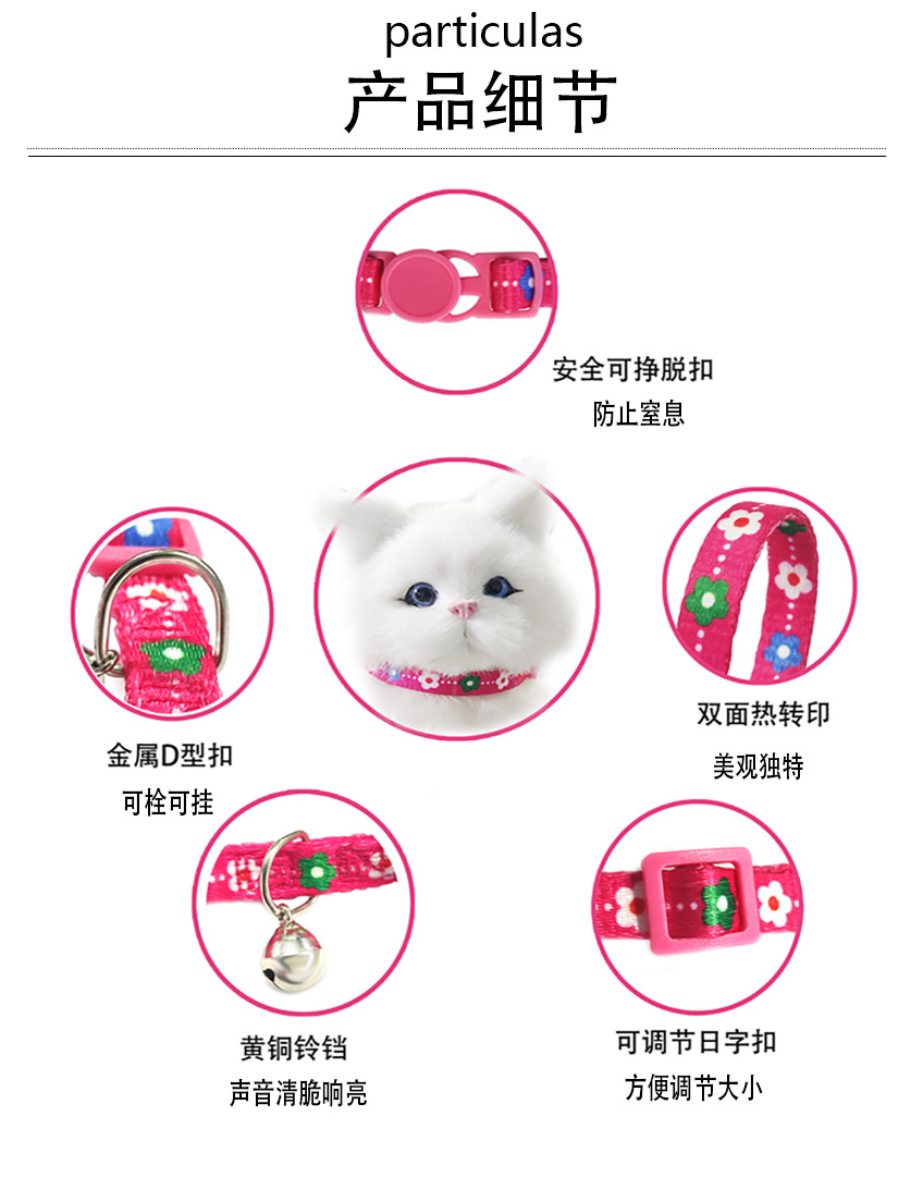 국경 간 인기 컬러 프린트 고양이 목걸이 벨 고양이 조절 가능 인기 상품 재고 있음 사계절 애완 동물