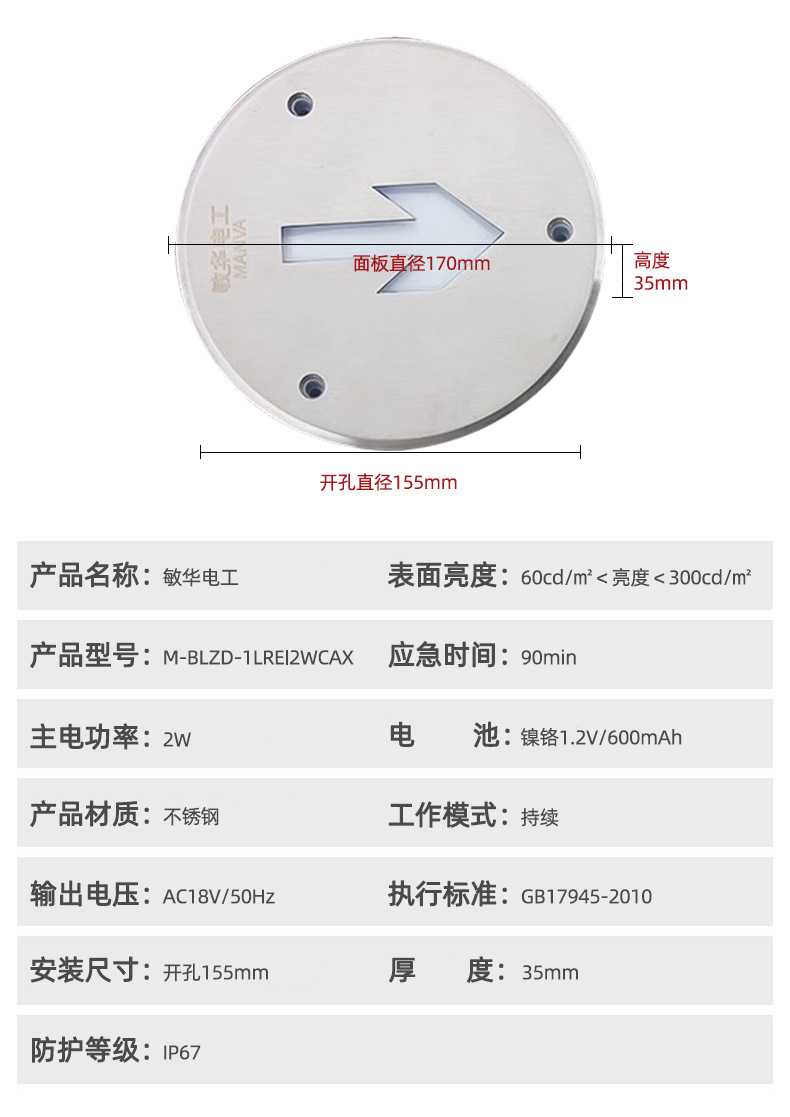 • 유니버셜 170 스테인레스 스틸 지하등 [이중 화살표] M6944