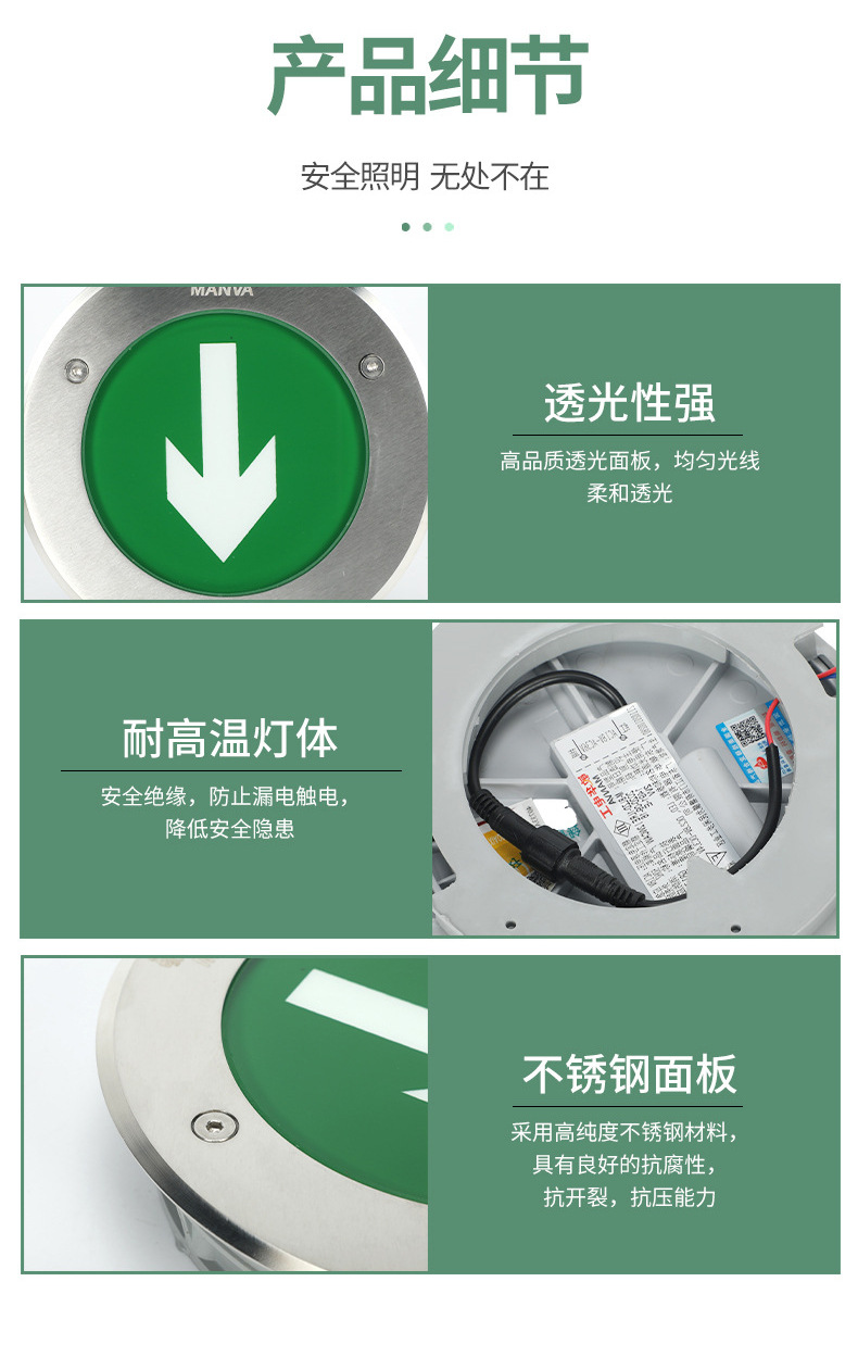 맞춤형 민화 소방 지하 조명 안전 출구 표시등 비상 랜드마크 조명 내장형 대피 표시등스토어 가기