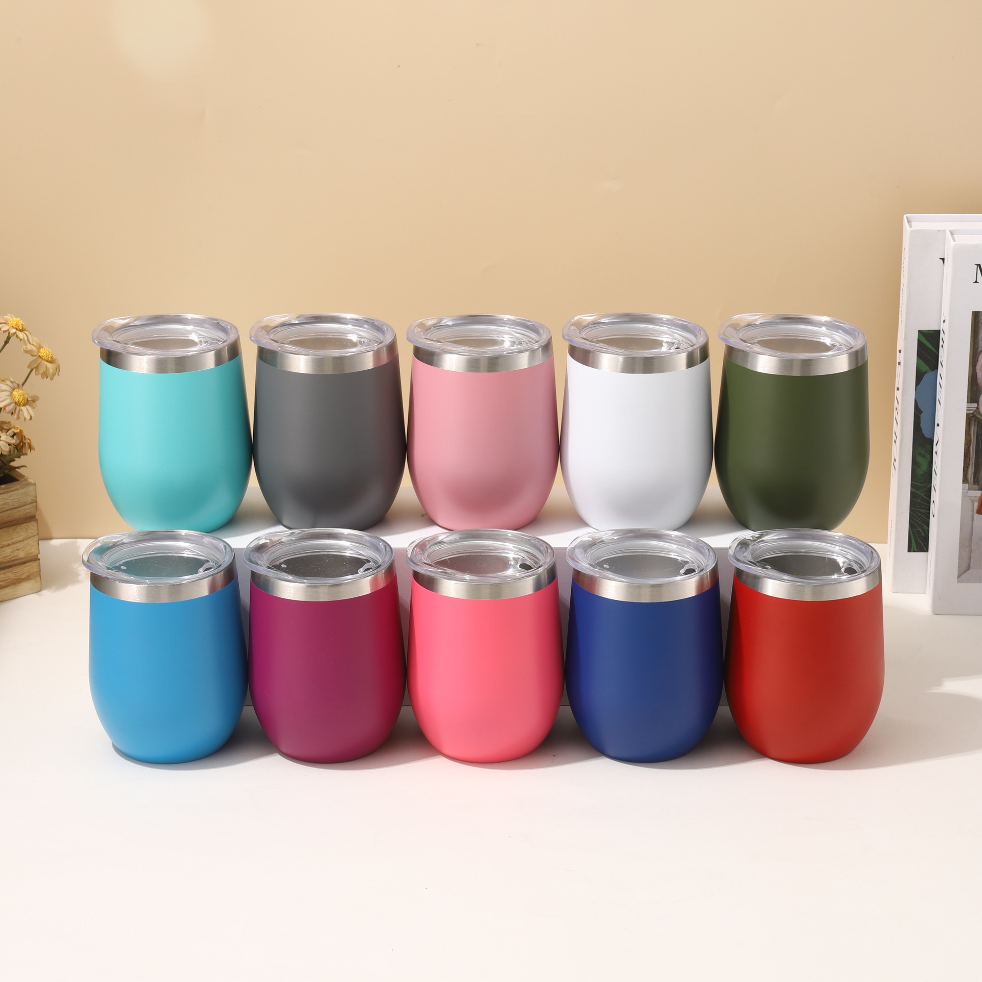 아마존 해외배송 12온스 달걀껍질컵 이중벽 304 스테인리스 진공 단열컵 스프레이 도장 U자형 달걀컵