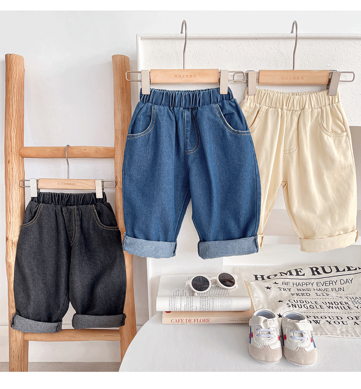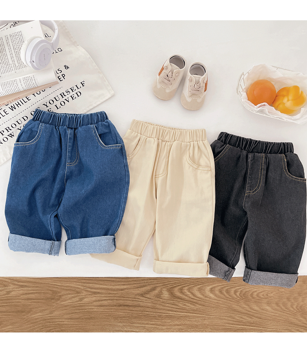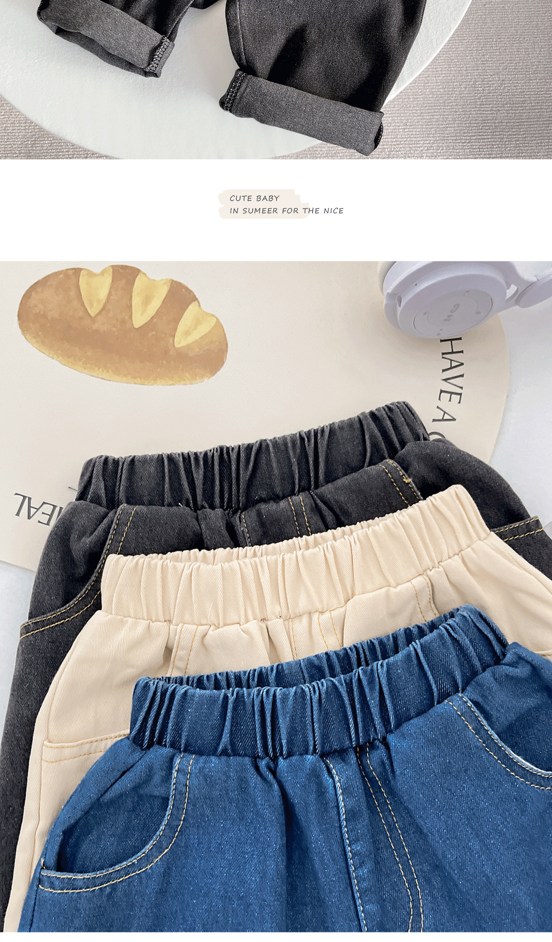 아기 가을 의류 한국 스타일 하이 웨이스트 청바지 소년 바지 캐주얼 새로운 부드럽고 왁시한 다용도 편안한 청바지스토어 가기