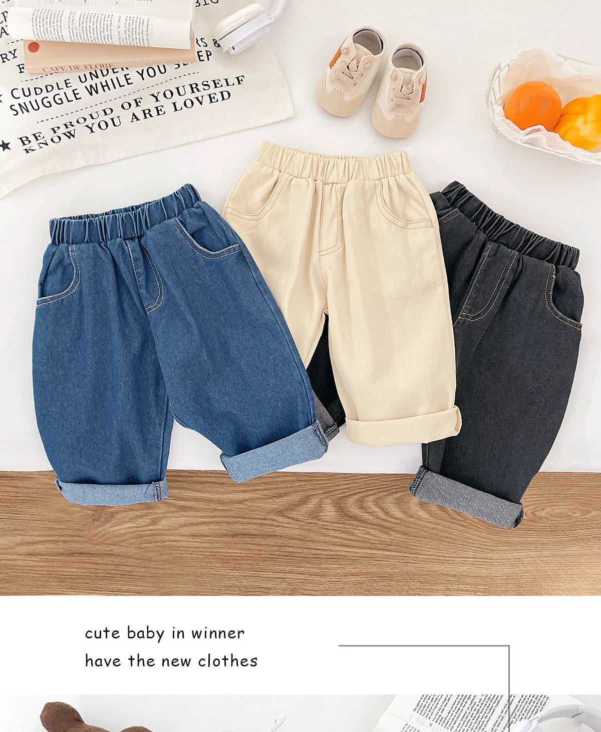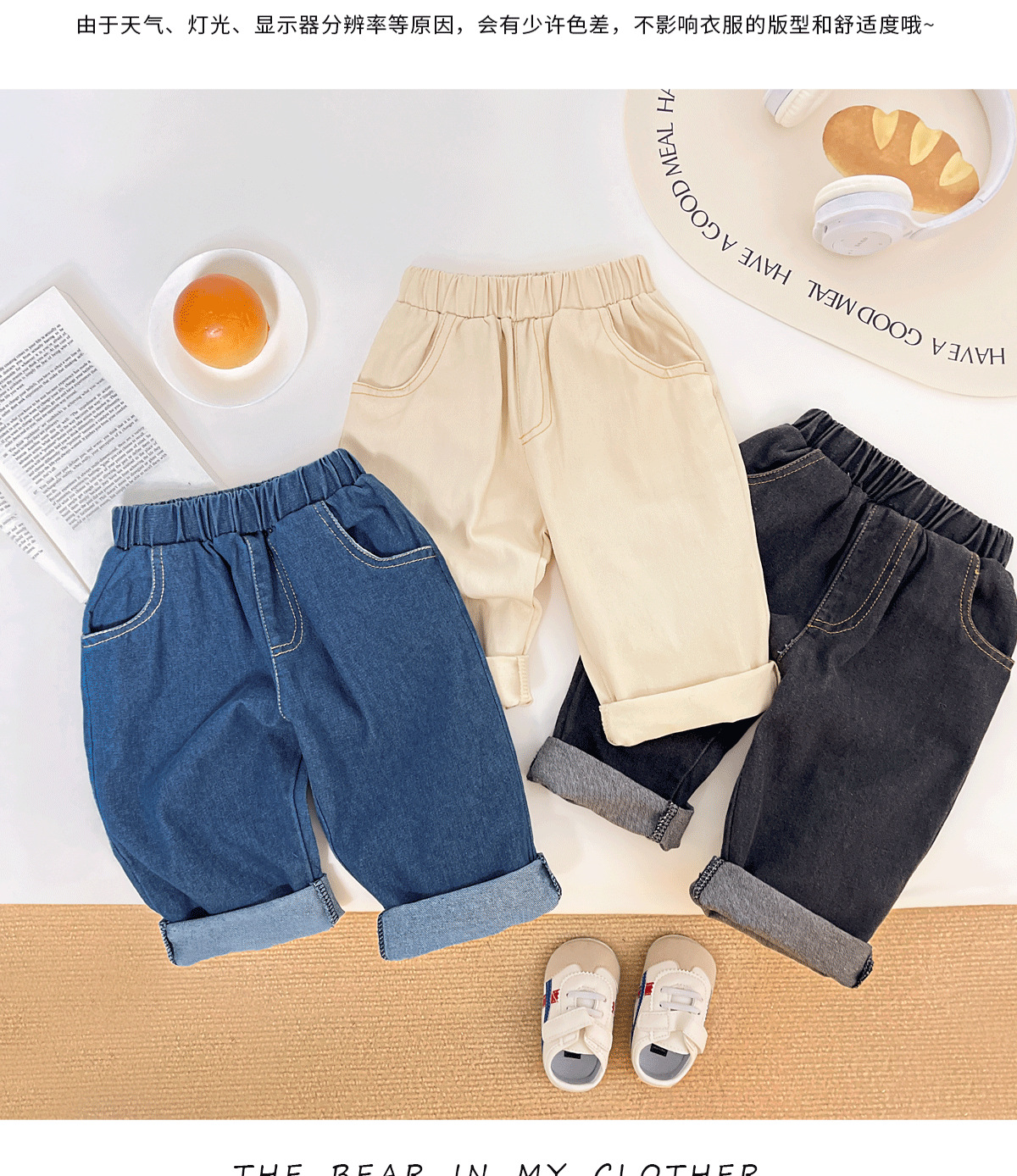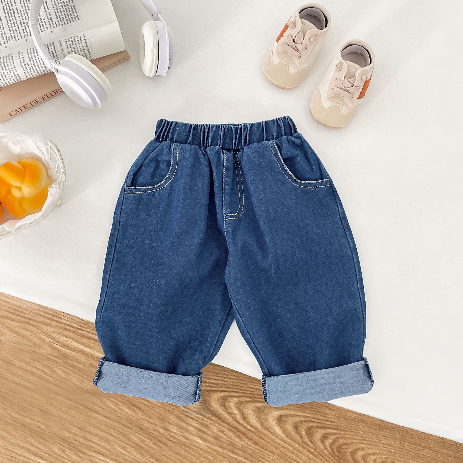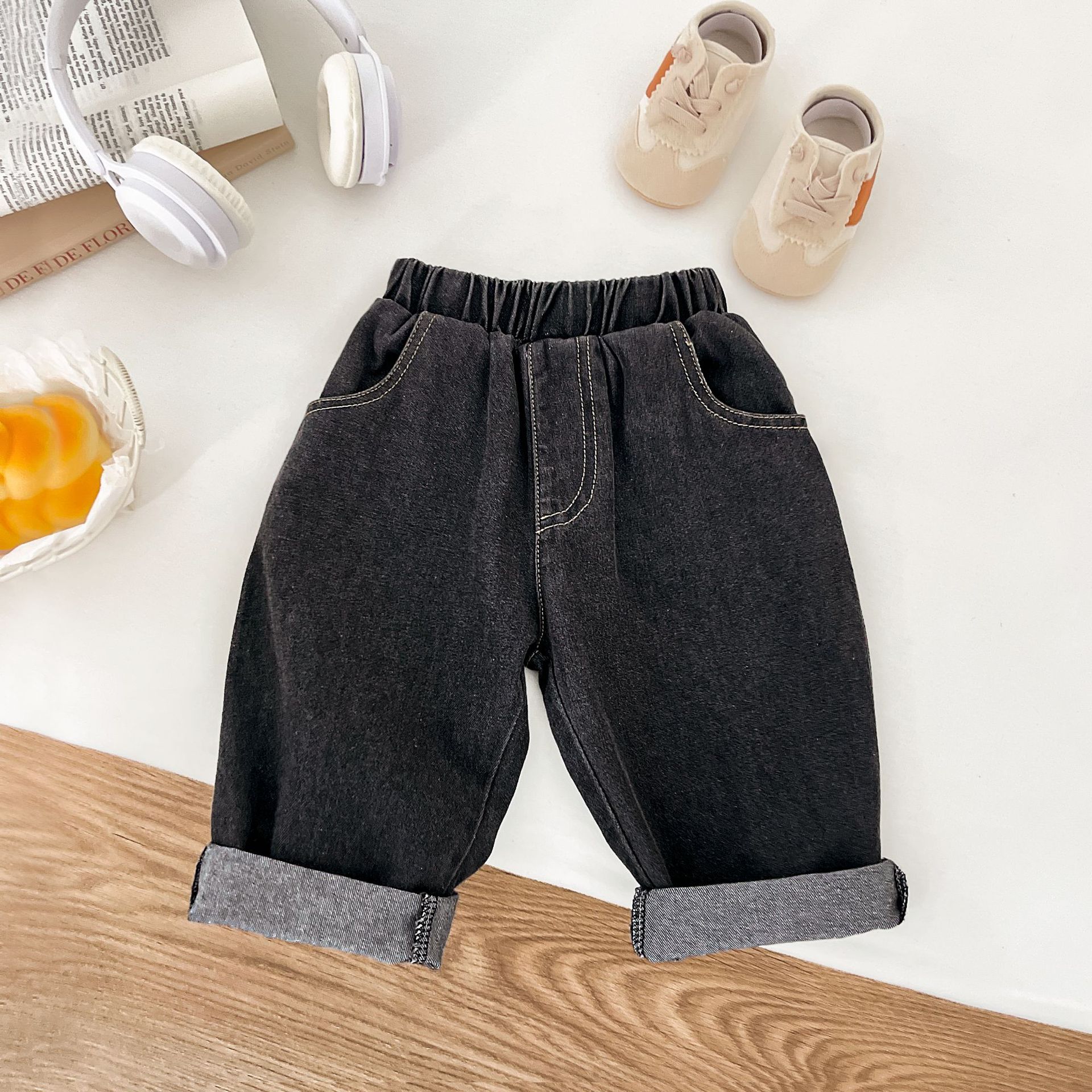 아기 가을 의류 한국 스타일 하이 웨이스트 청바지 소년 바지 캐주얼 새로운 부드럽고 왁시한 다용도 편안한 청바지
