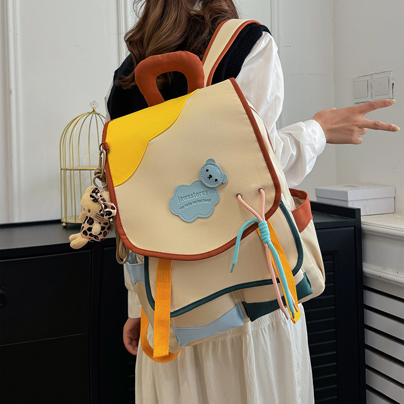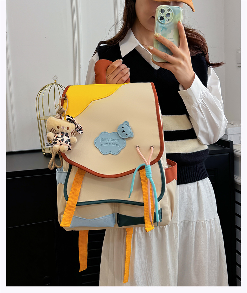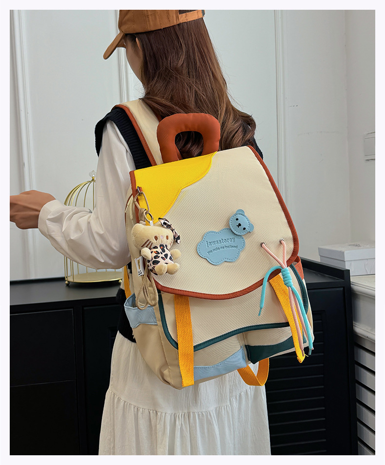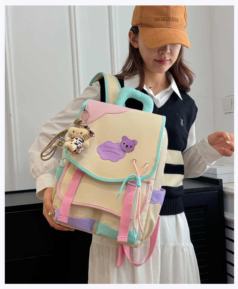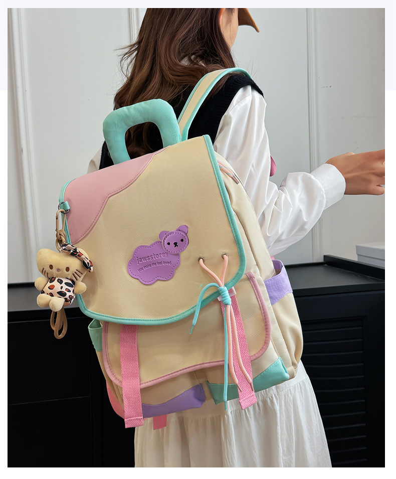 중학교 및 고등학생을위한 일본 스타일 Ins 스타일 배낭 귀여운 마카롱 컬러 대비 배낭 대용량 경량 여행 가방스토어 가기