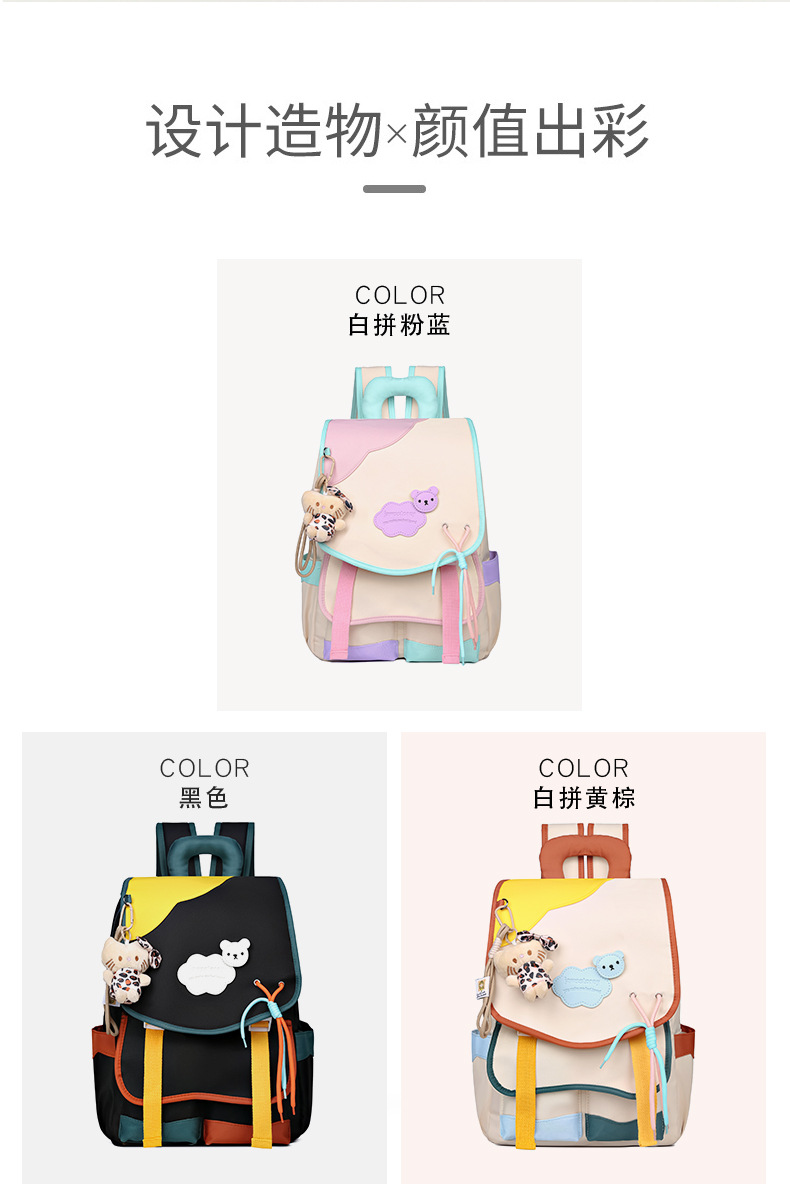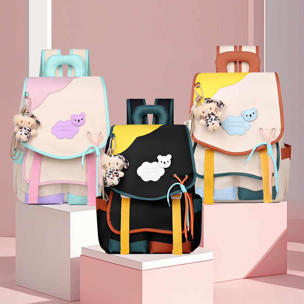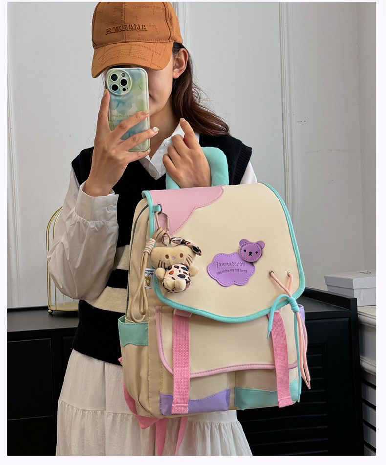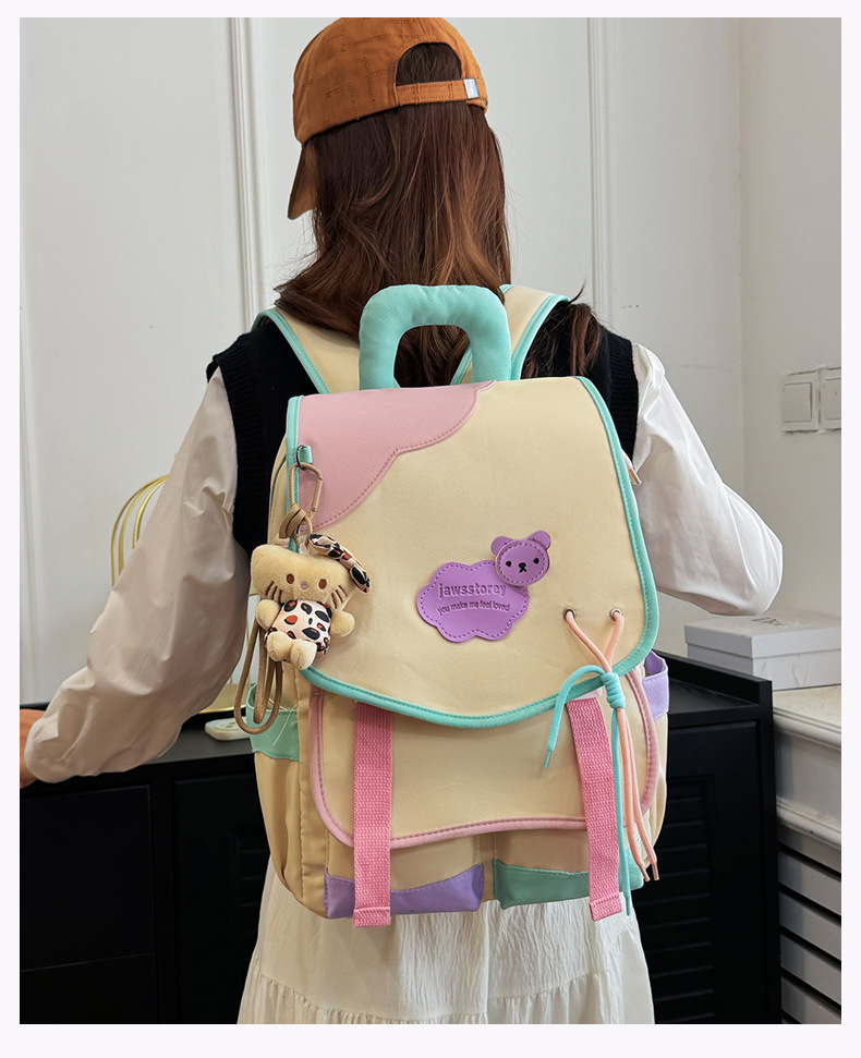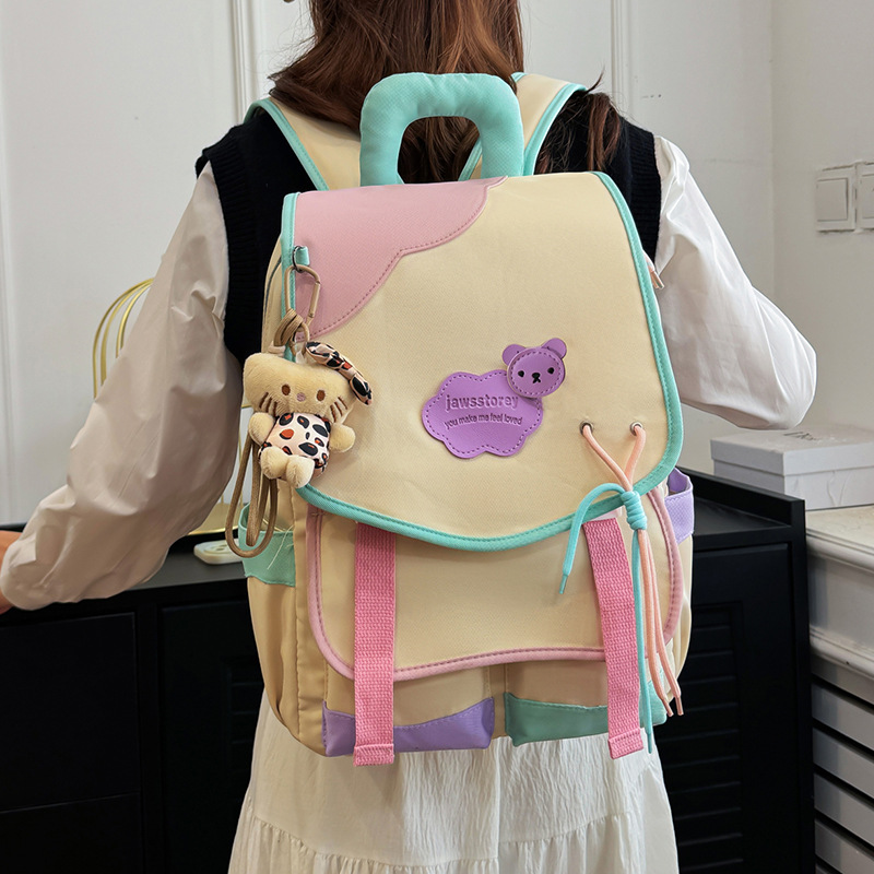 중학교 및 고등학생을위한 일본 스타일 Ins 스타일 배낭 귀여운 마카롱 컬러 대비 배낭 대용량 경량 여행 가방