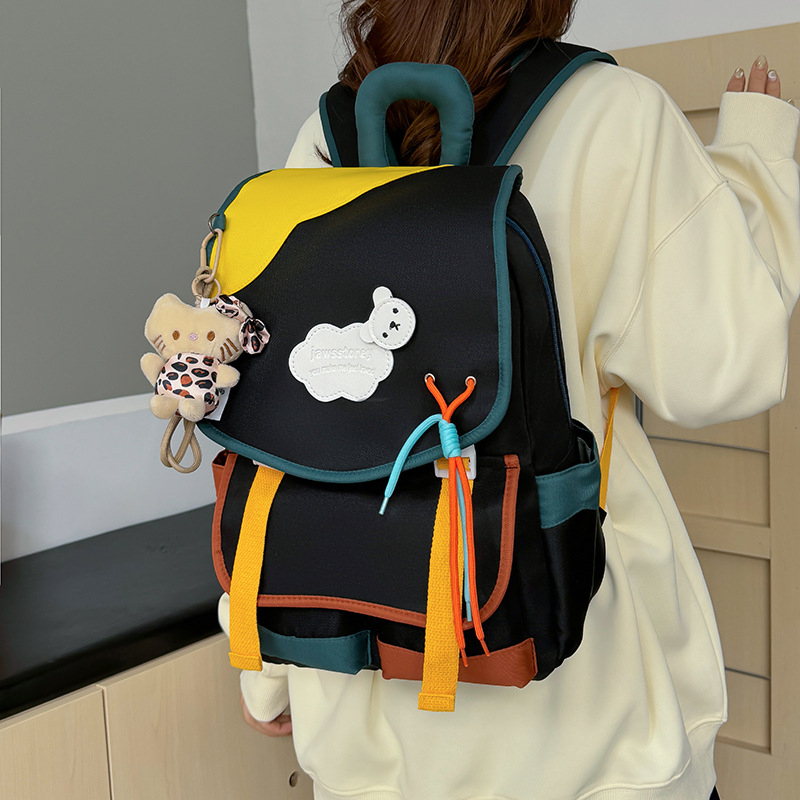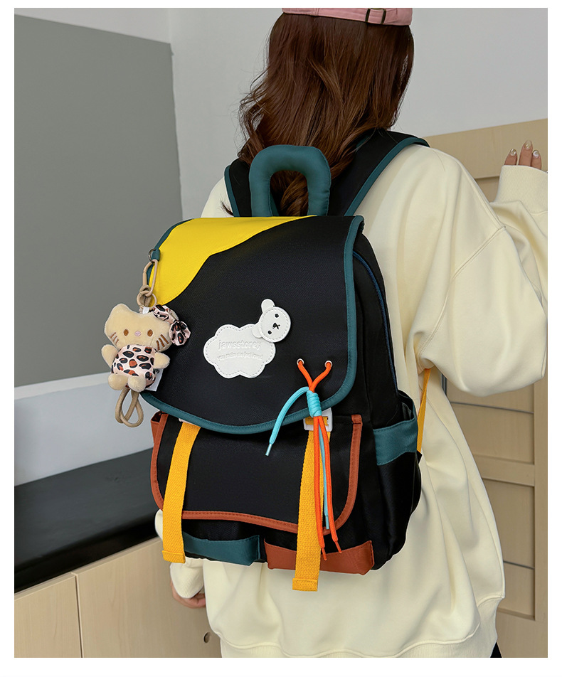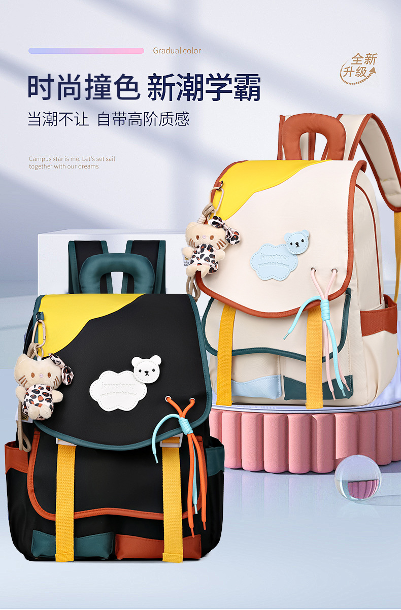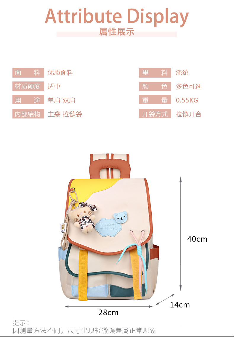 중학교 및 고등학생을위한 일본 스타일 Ins 스타일 배낭 귀여운 마카롱 컬러 대비 배낭 대용량 경량 여행 가방