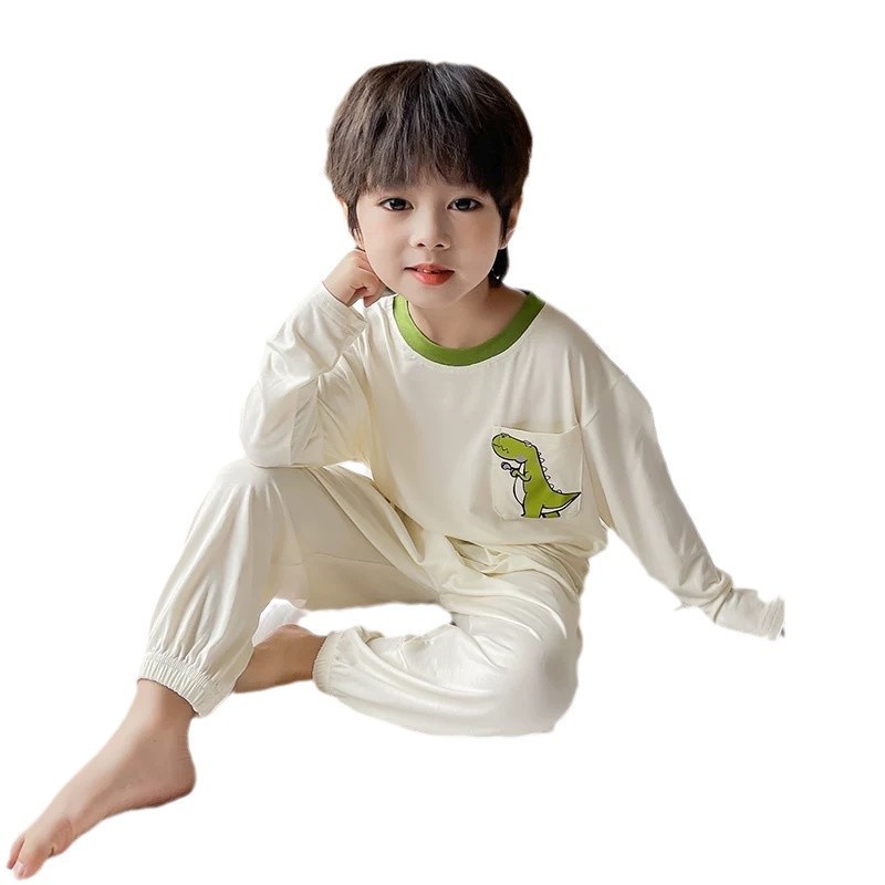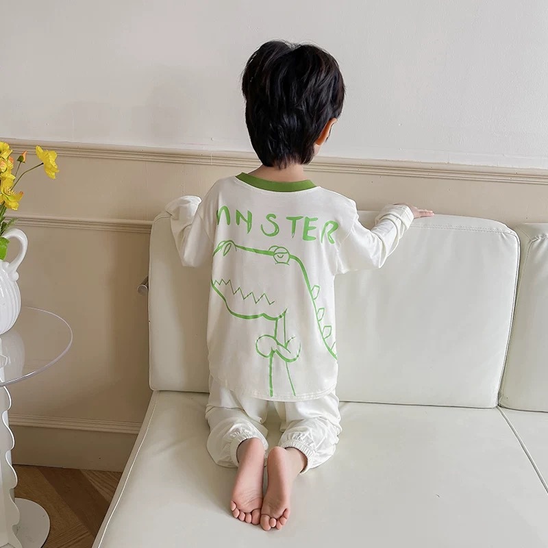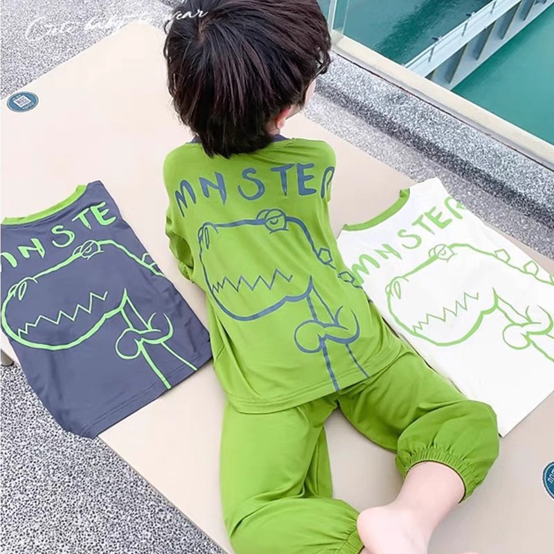 남학생 잠옷 2024 년 여름 얇은 새 잘 생긴 어린이 집 옷 세트 에어컨 반팔 여름 투피스 세트