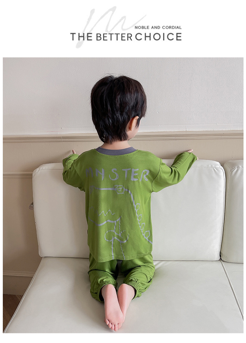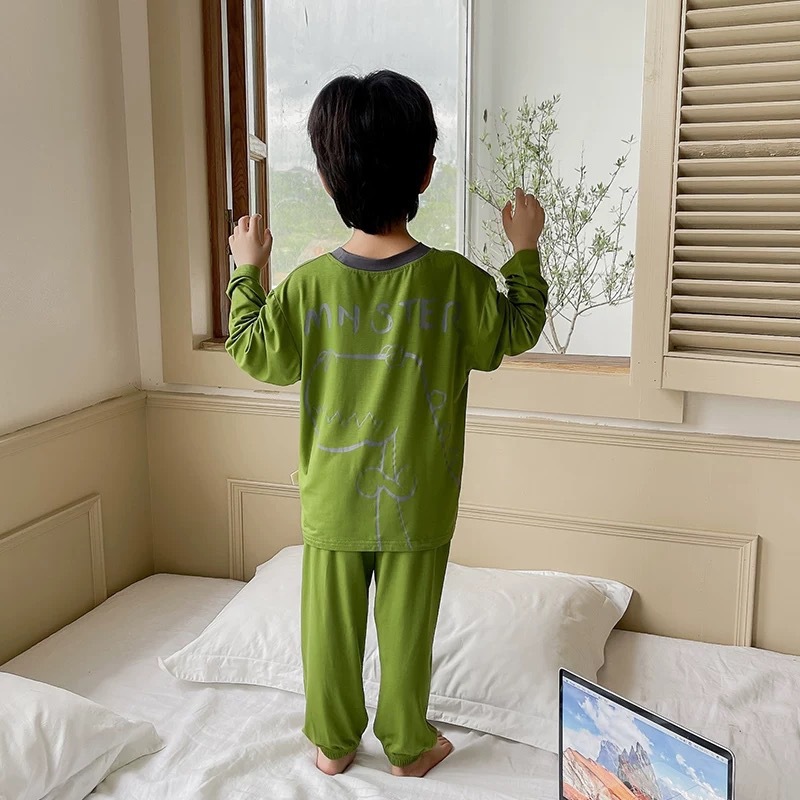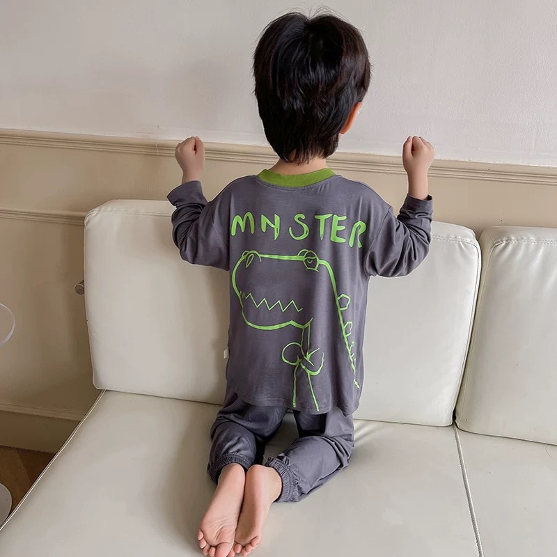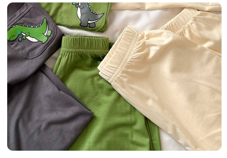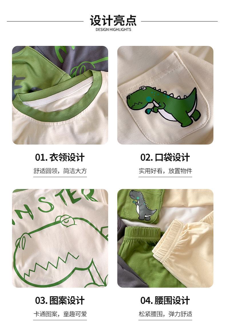 남학생 잠옷 2024 년 여름 얇은 새 잘 생긴 어린이 집 옷 세트 에어컨 반팔 여름 투피스 세트스토어 가기