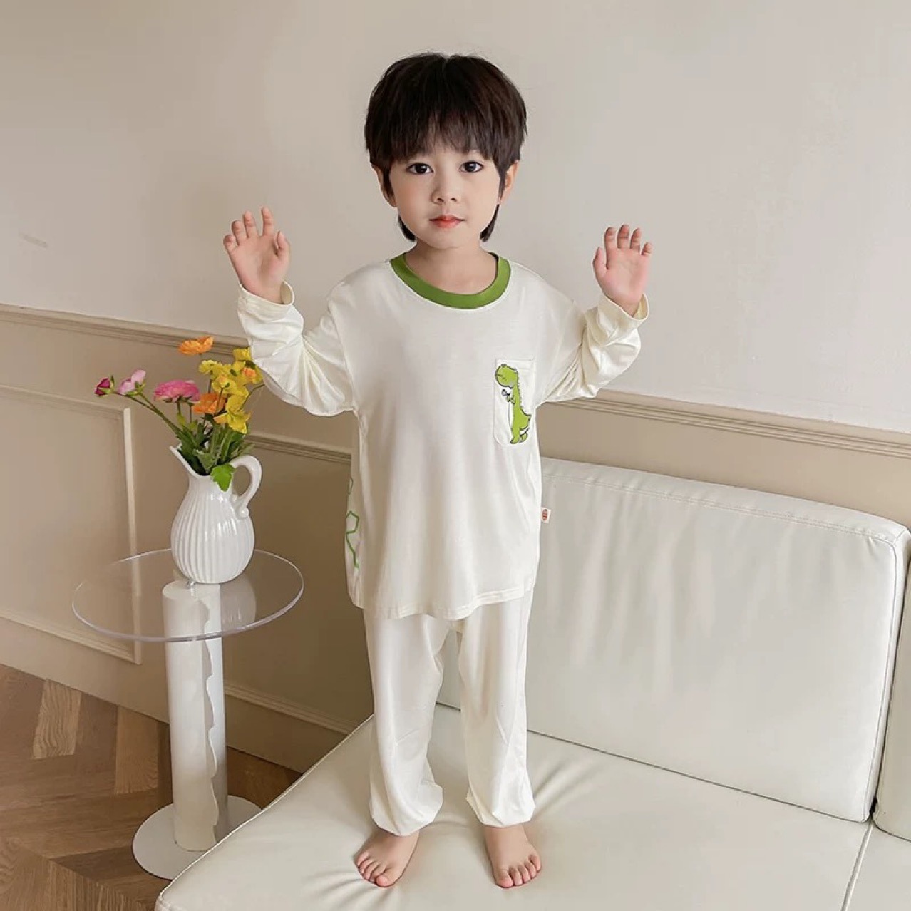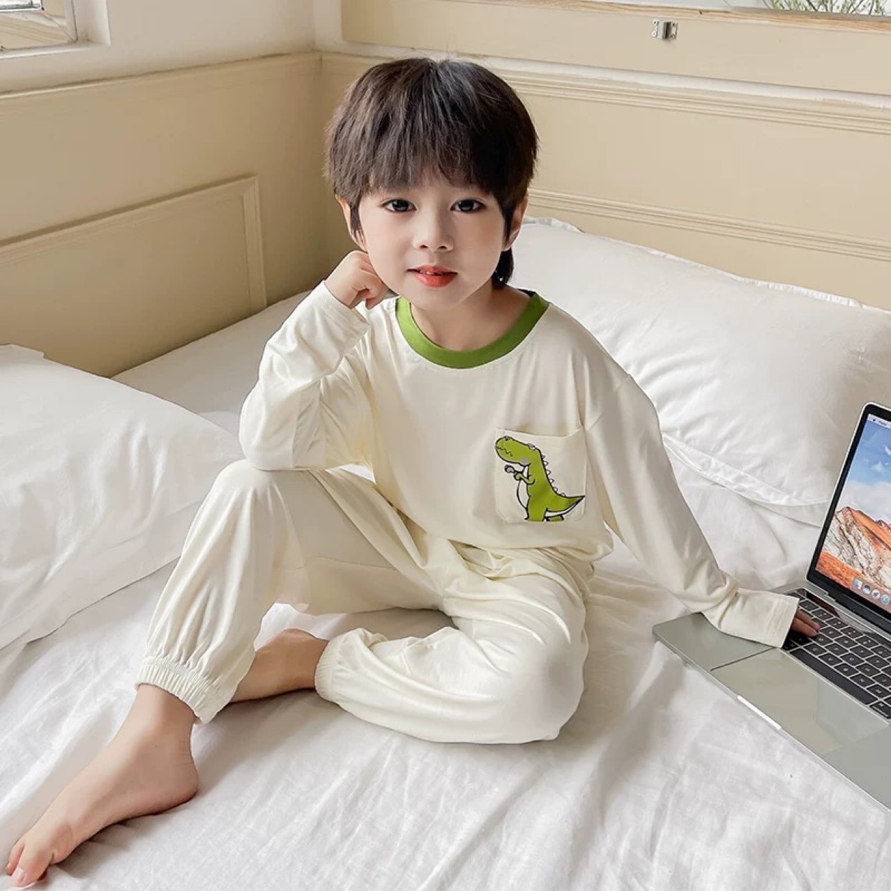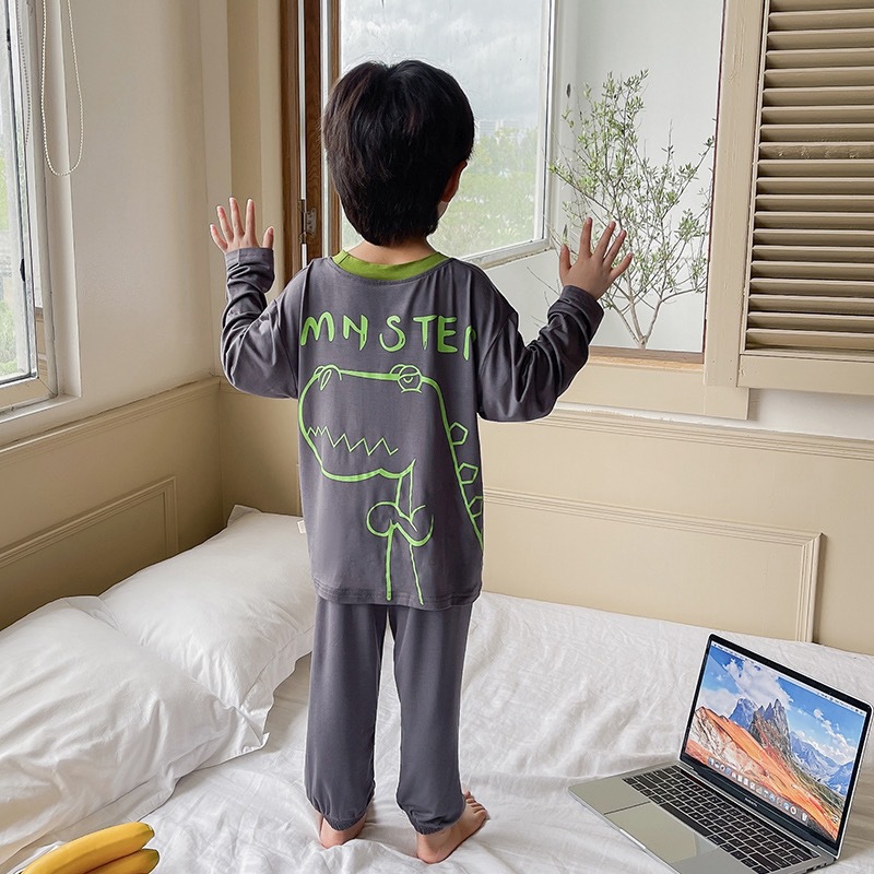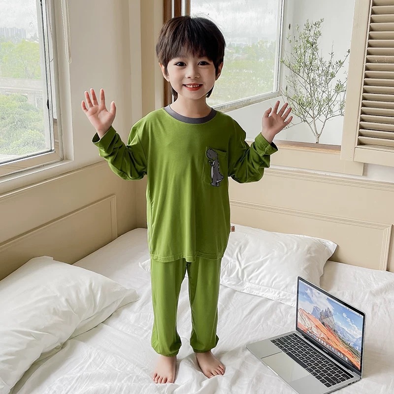 남학생 잠옷 2024 년 여름 얇은 새 잘 생긴 어린이 집 옷 세트 에어컨 반팔 여름 투피스 세트스토어 가기