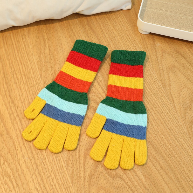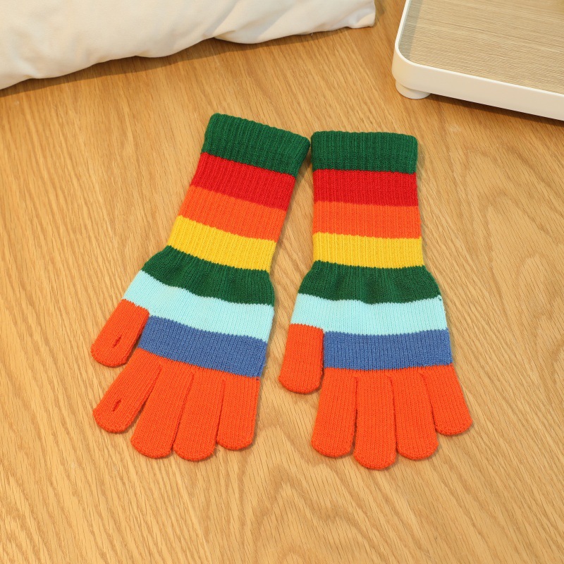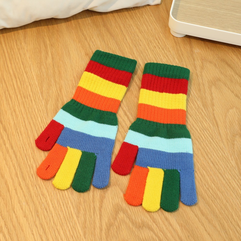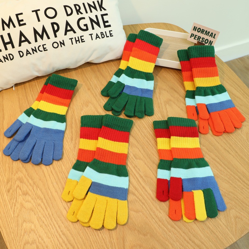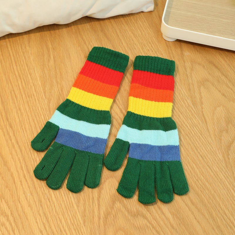 秋冬可触屏彩虹条纹手套加厚百搭潮针织毛线保暖手套女冬漏指批发