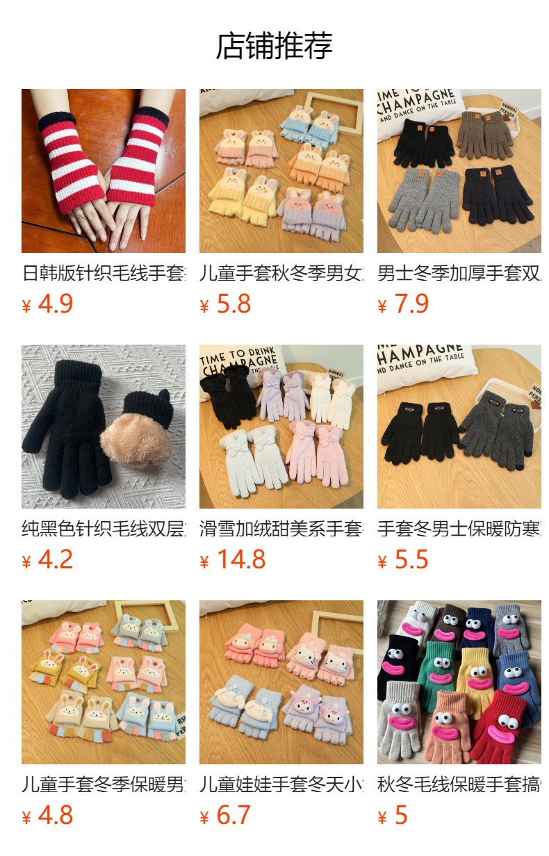 韩版针织毛线条纹拼接色手套女冬季保暖手套
