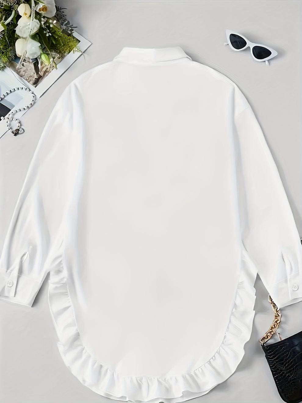 국경 간 여성 폭발 연꽃 잎 레이스 화이트 셔츠 2024 가을 유럽과 미국 캐주얼 루즈 셔츠 카디건 여성