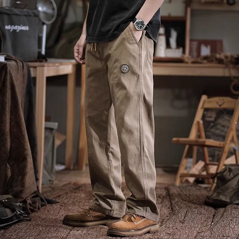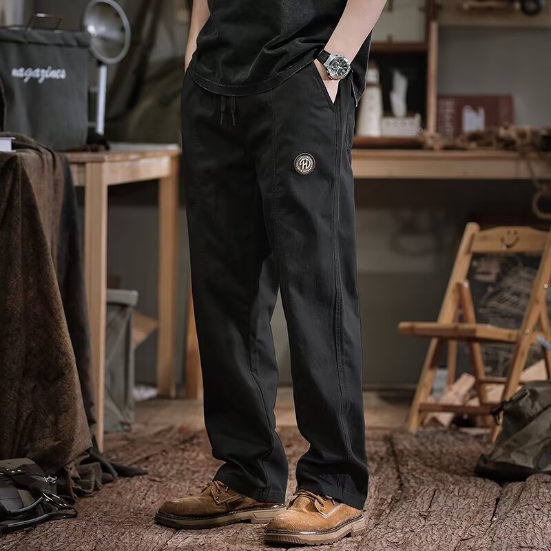 2024 새로운 미국 스타일 레트로 캐주얼 바지 남자 가을 패션 올 매치 루즈 스트레이트 툴링 캐주얼 바지스토어 가기