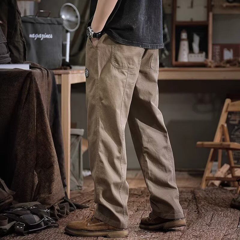 2024 새로운 미국 스타일 레트로 캐주얼 바지 남자 가을 패션 올 매치 루즈 스트레이트 툴링 캐주얼 바지