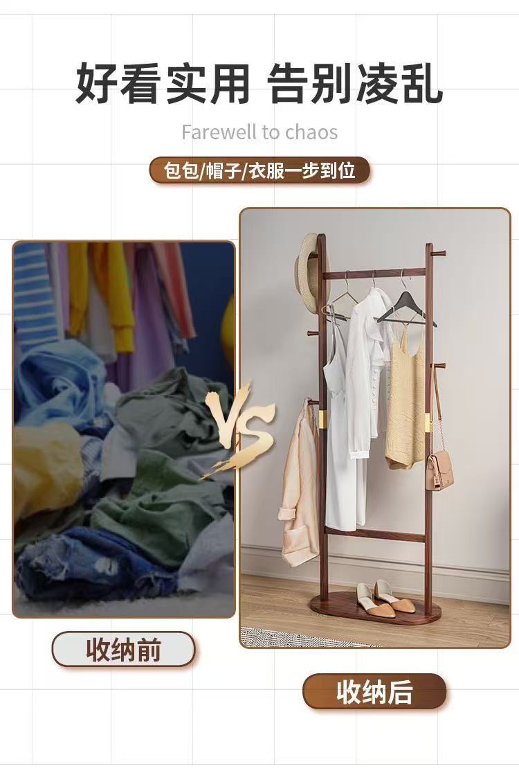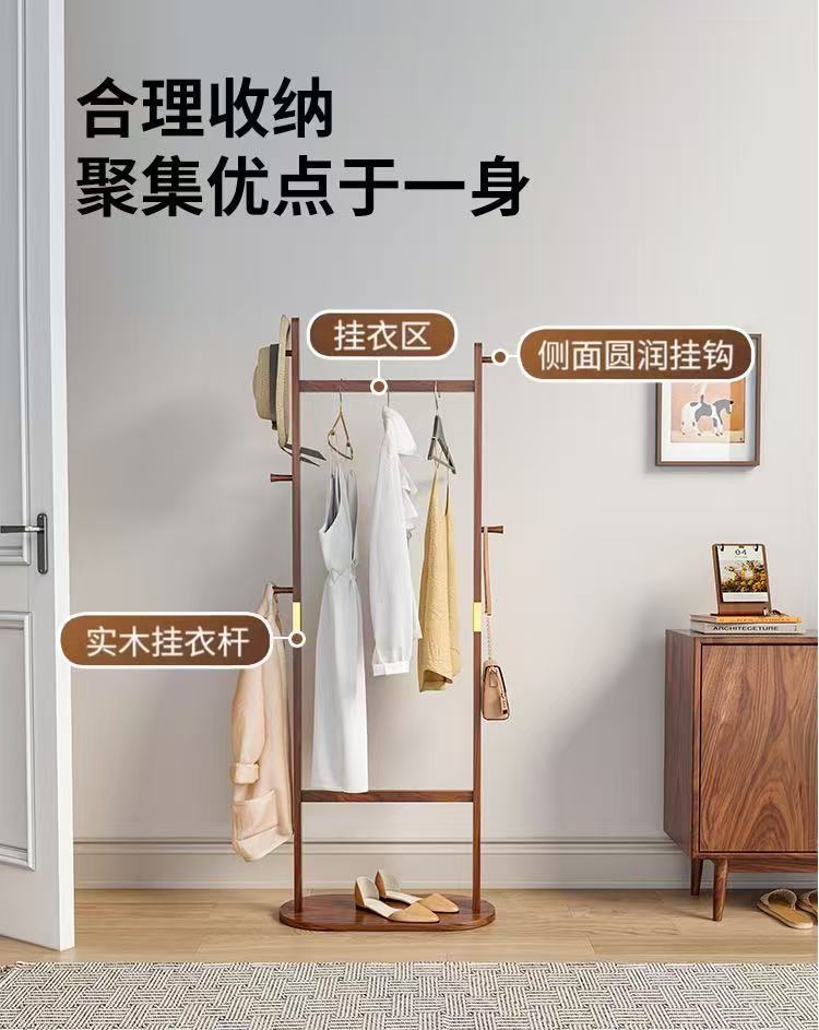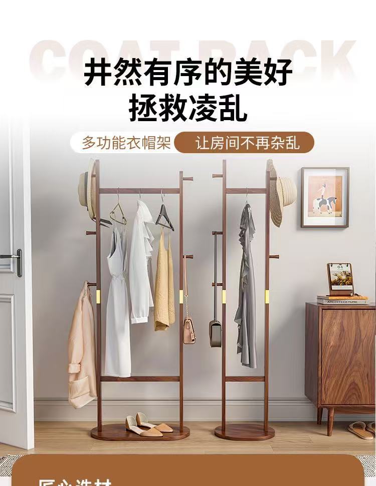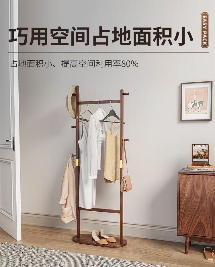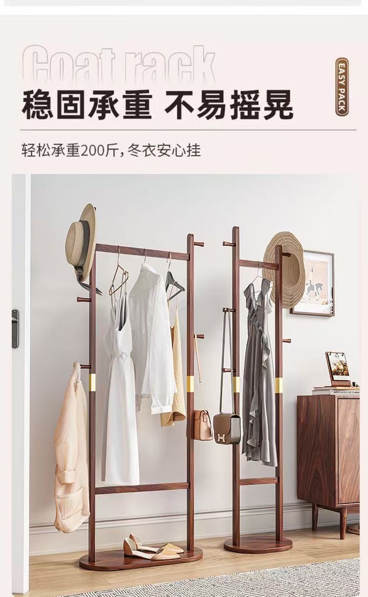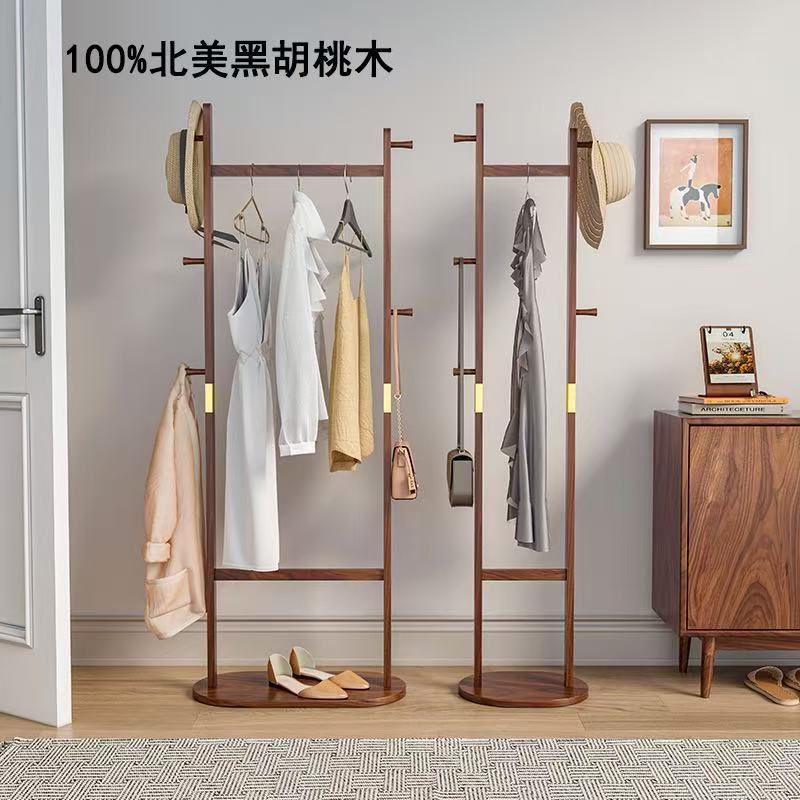 블랙 호두 솔리드 우드 코트 랙 새로운 중국 스타일 의류 랙 침실 가구 빛 럭셔리 현대 간단한 입구 옷걸이스토어 가기