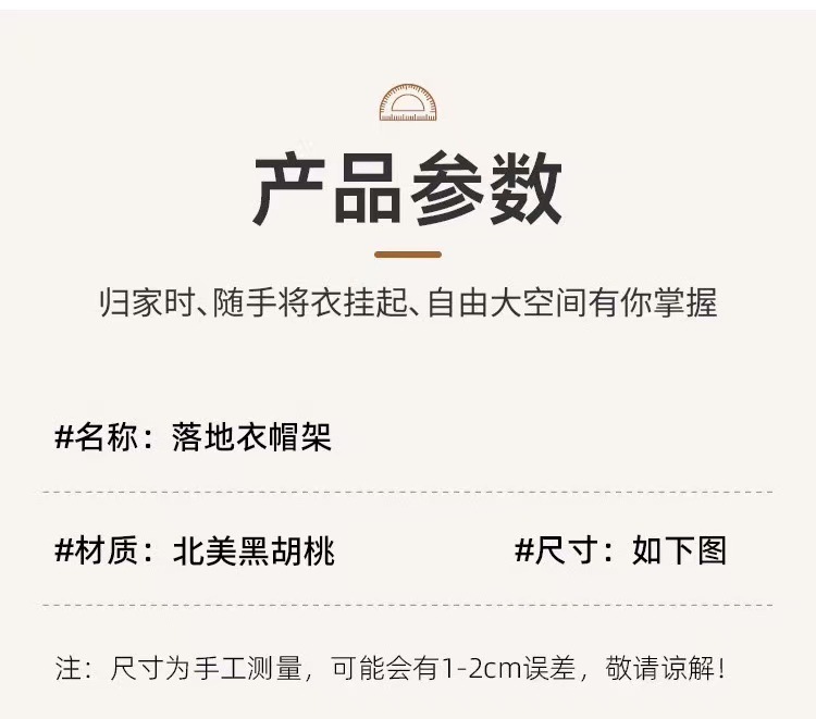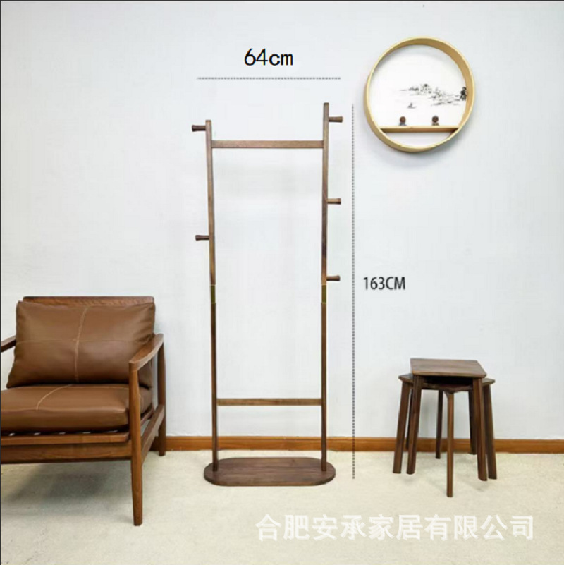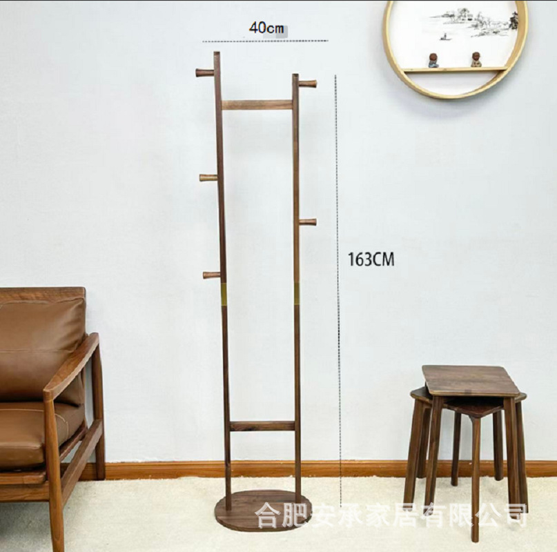블랙 호두 솔리드 우드 코트 랙 새로운 중국 스타일 의류 랙 침실 가구 빛 럭셔리 현대 간단한 입구 옷걸이