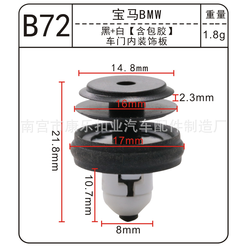 • B72 블랙 + 화이트 [고무 코팅 포함] 도어 내부 장식 패널 버클