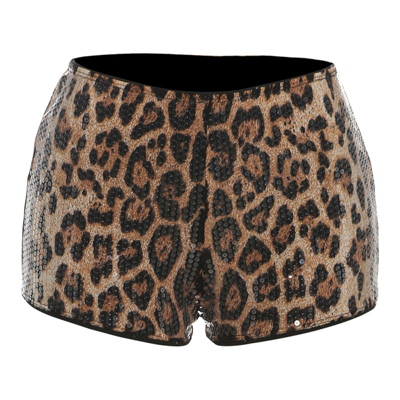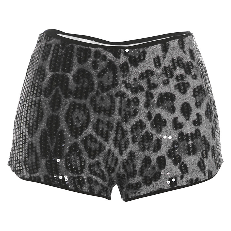유럽과 미국의 국경을 넘나드는 2025 가을 겨울 신상 여성 패션 섹시한 스팽글 레오파드 프린트 섹시 로우 웨이스트 여성 반바지스토어 가기