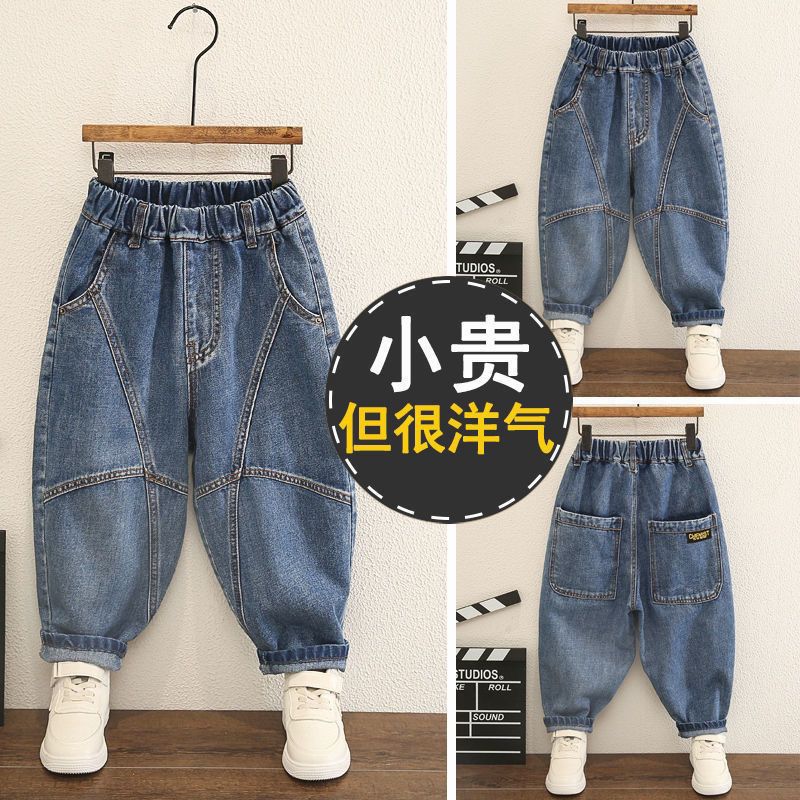 소년 바지 봄과 가을 트렌디 한 청바지 한국 스타일 토레 2024 새로운 어린이 가을 느슨한 할란 무스토어 가기