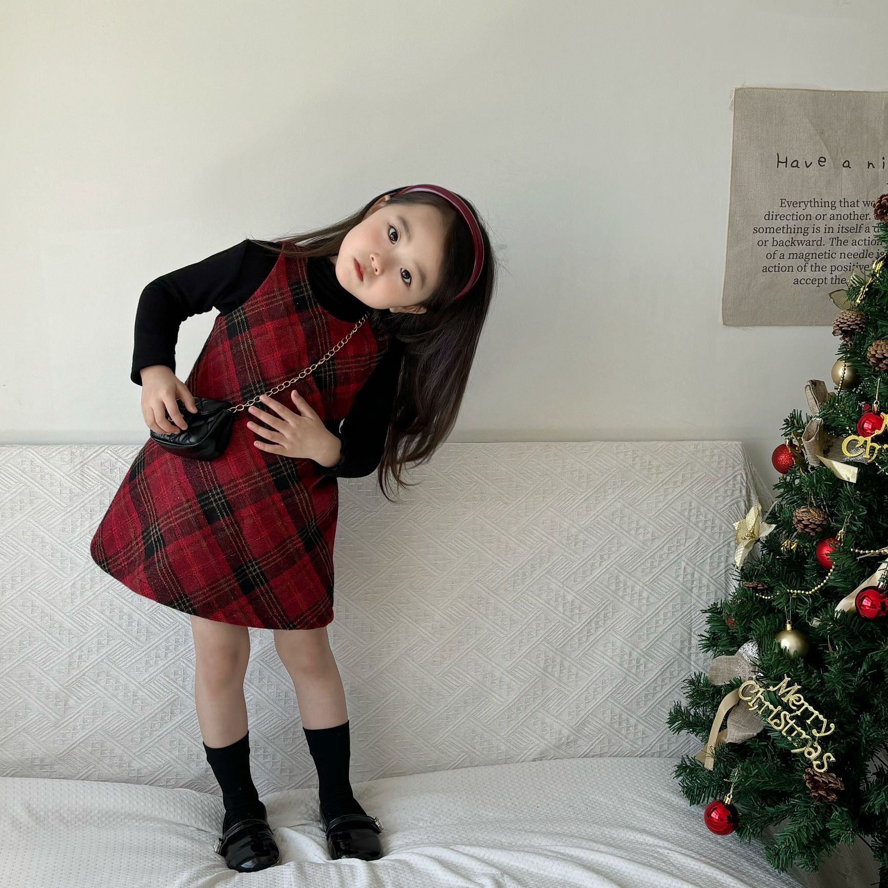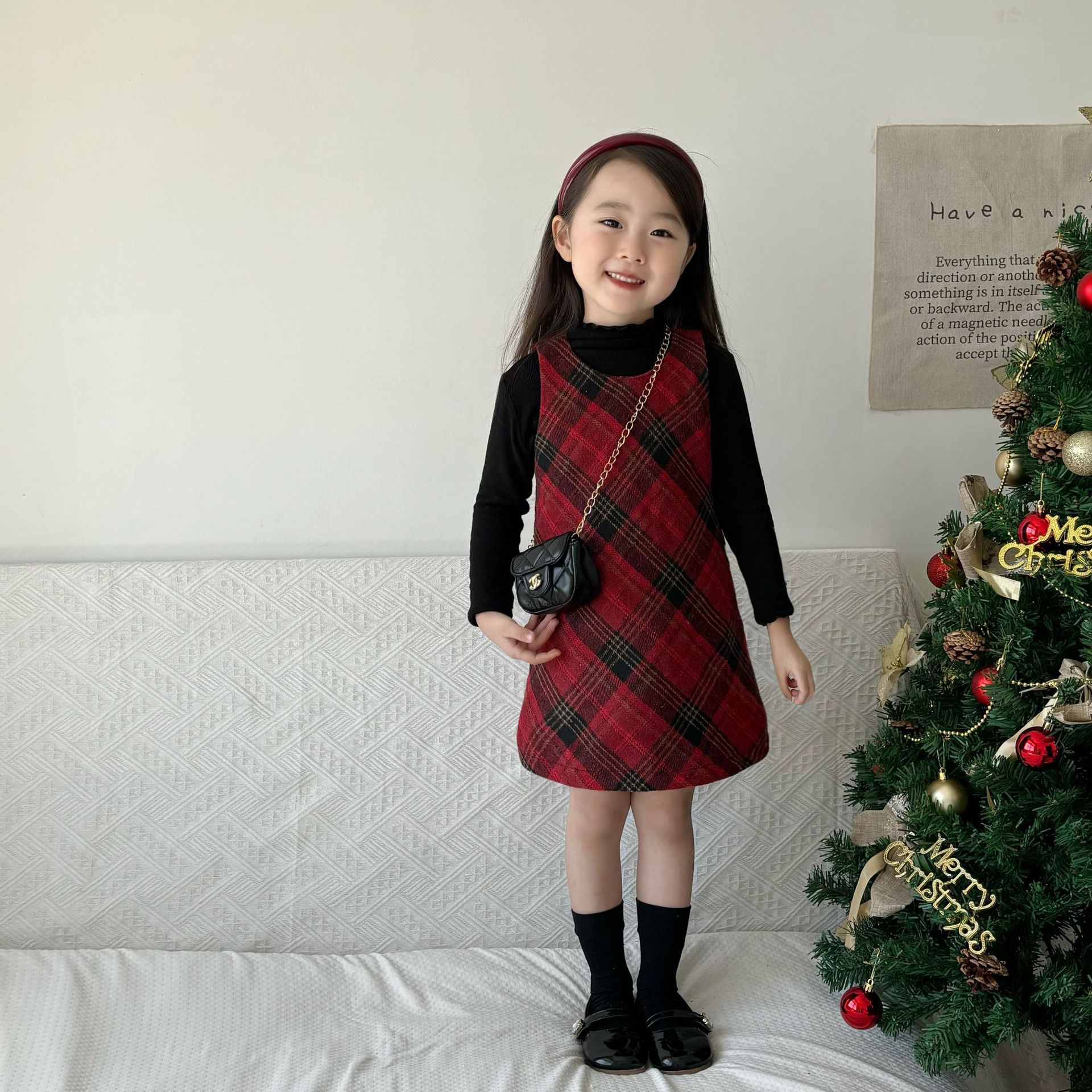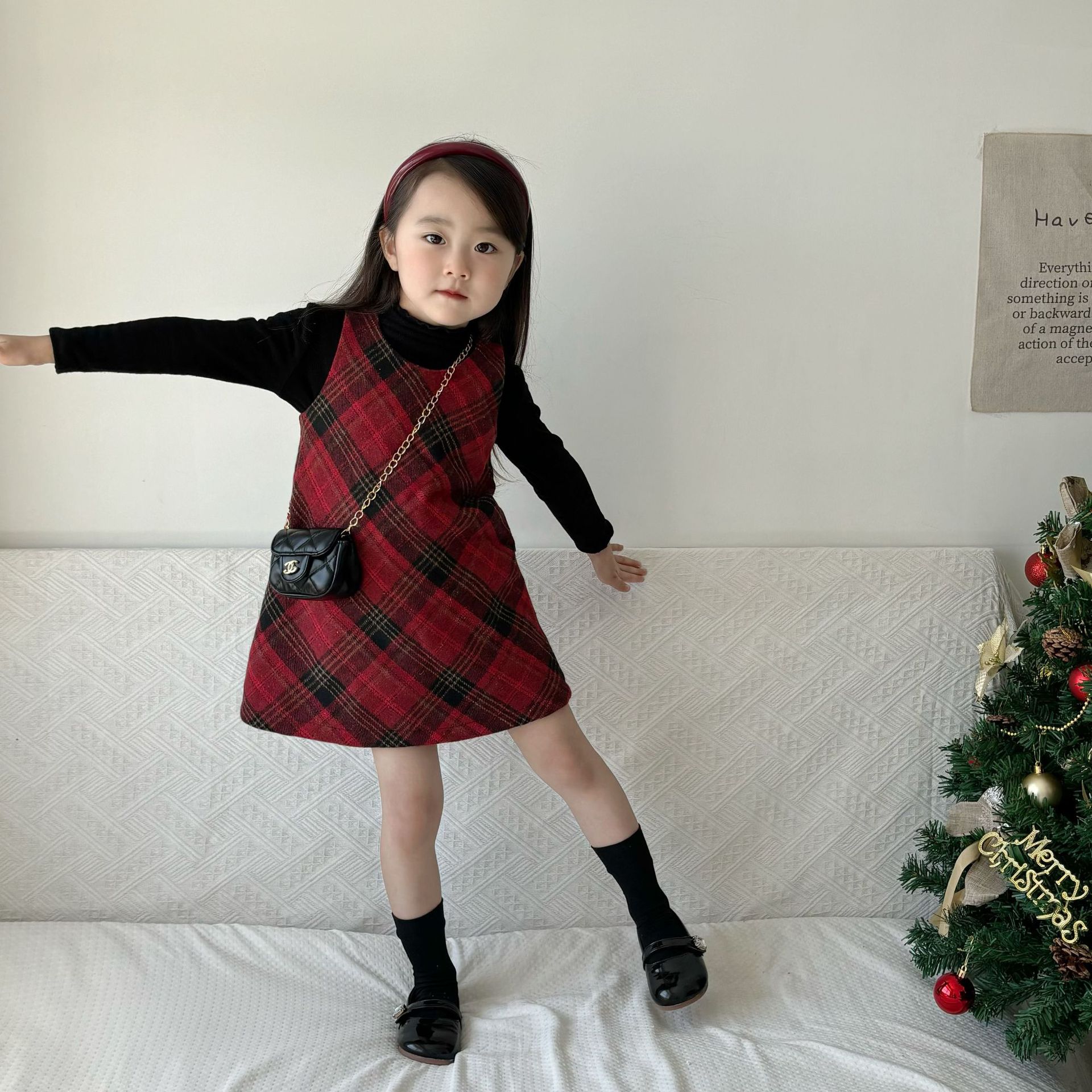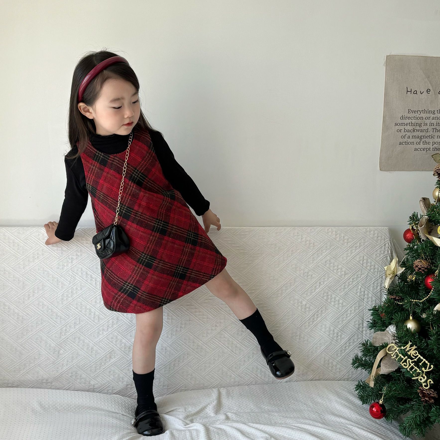 여아용 빨간색 체크무늬 누빔 조끼 원피스 2025 겨울 신상 여아 크리스마스 새해 드레스 생일 원피스스토어 가기