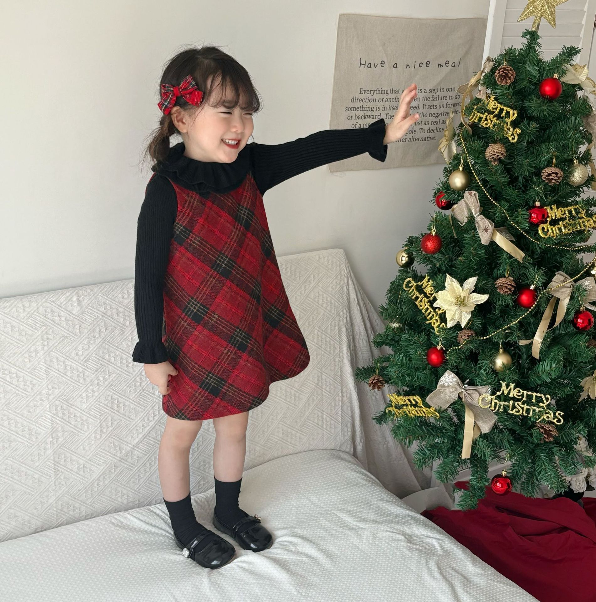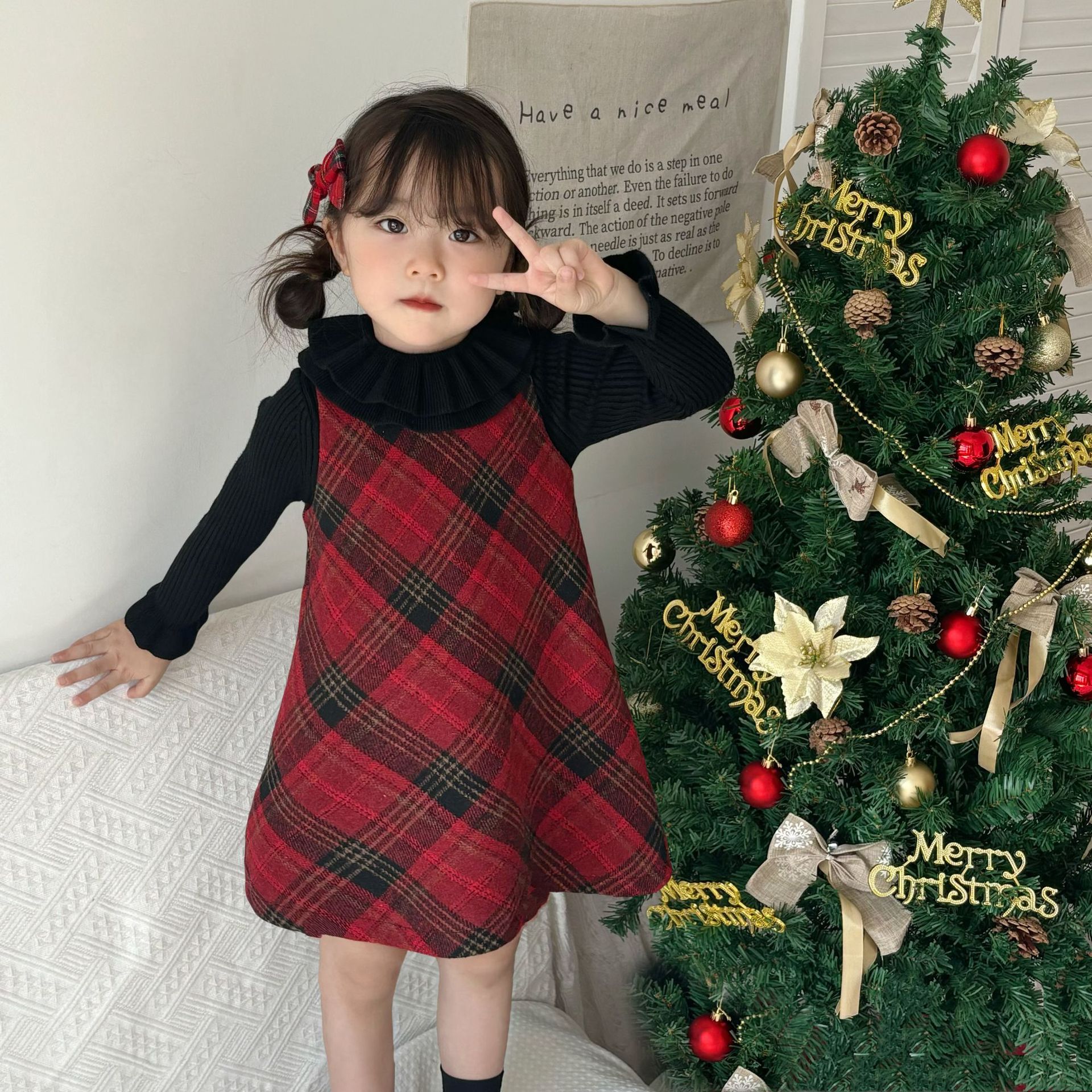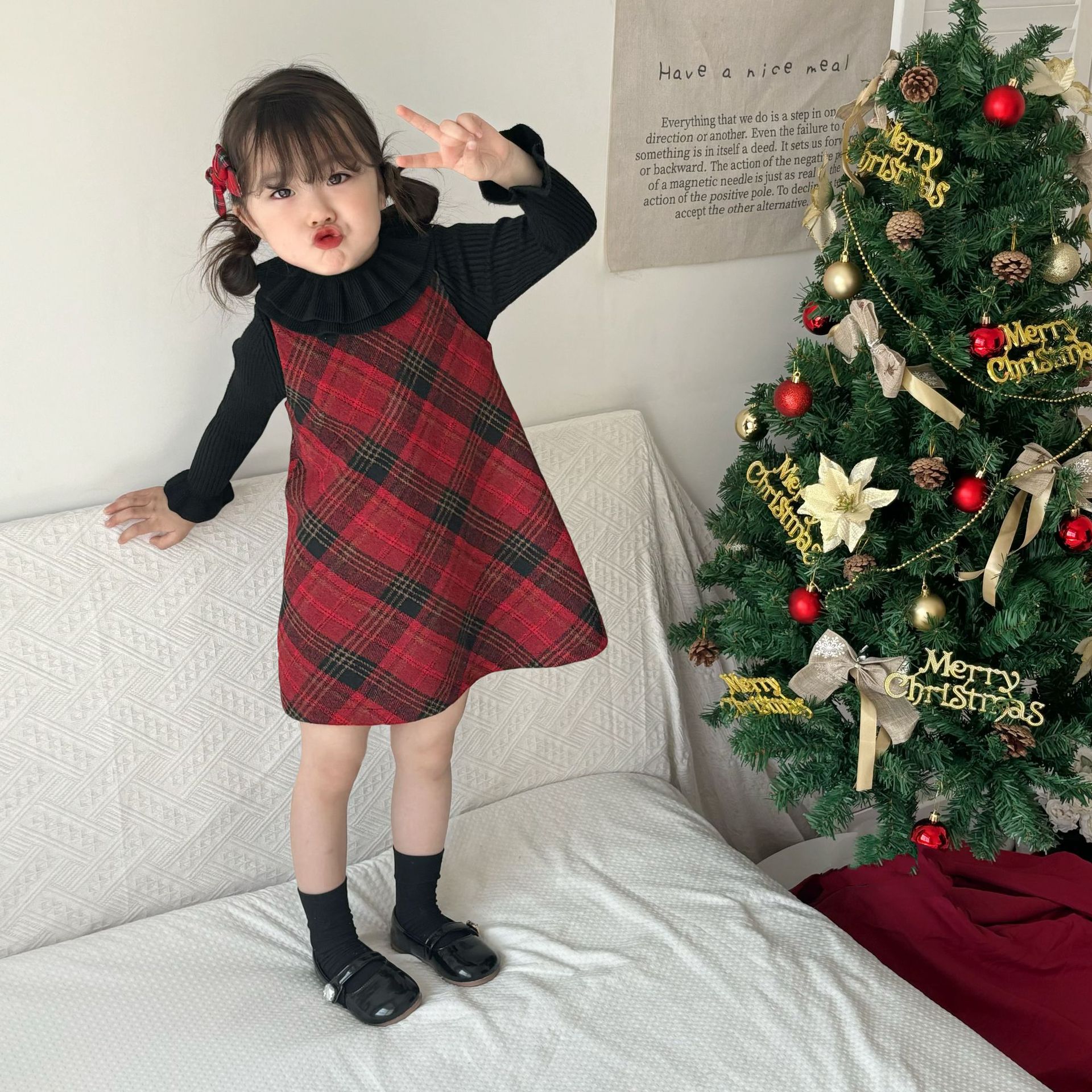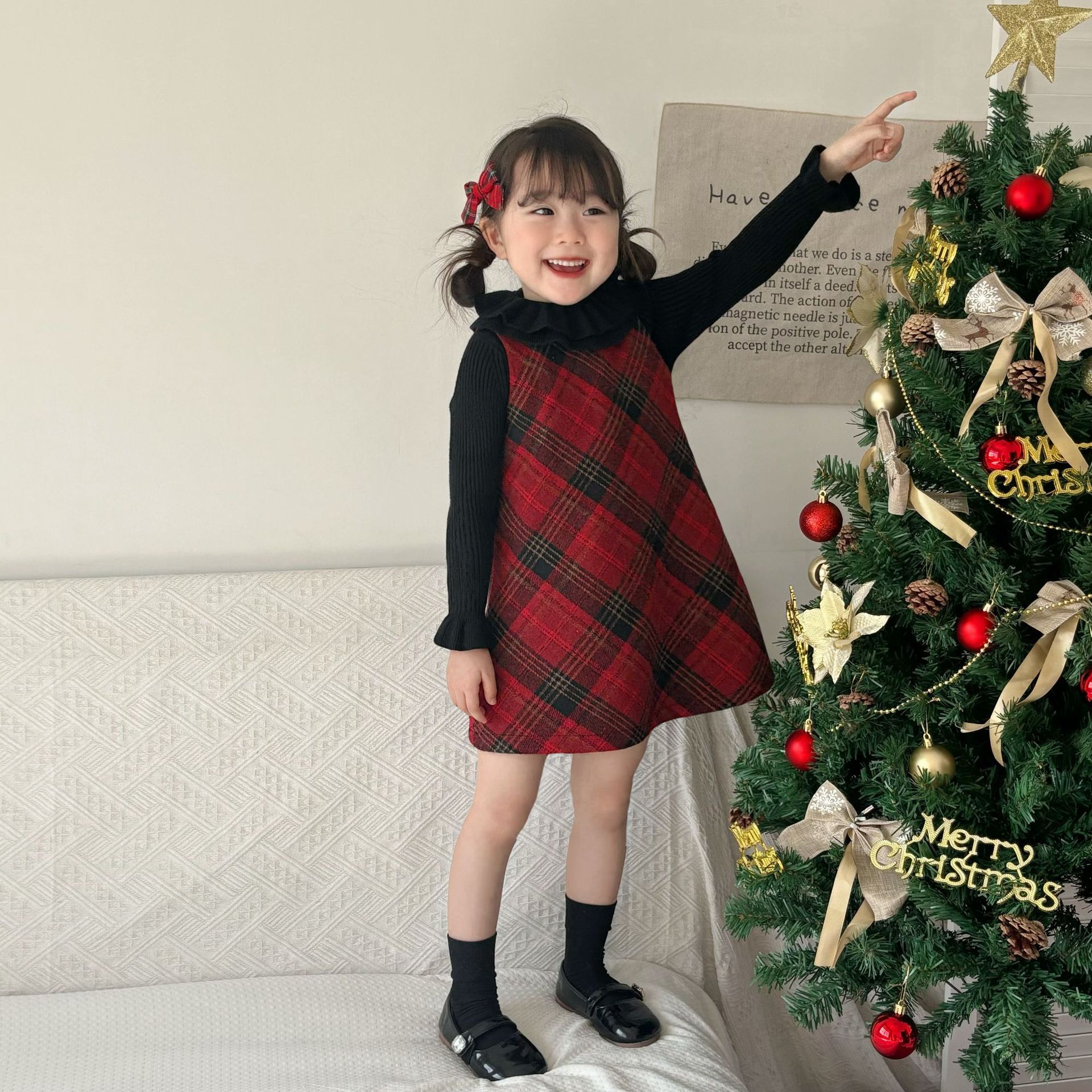 여아용 빨간색 체크무늬 누빔 조끼 원피스 2025 겨울 신상 여아 크리스마스 새해 드레스 생일 원피스스토어 가기
