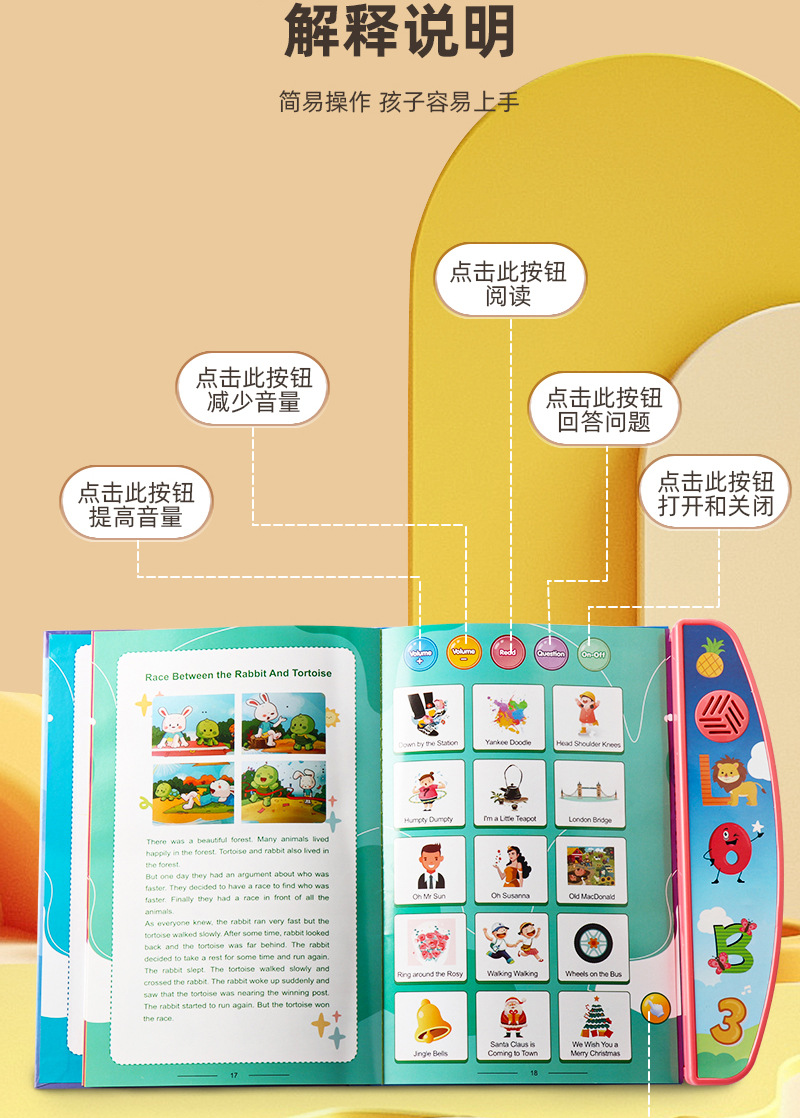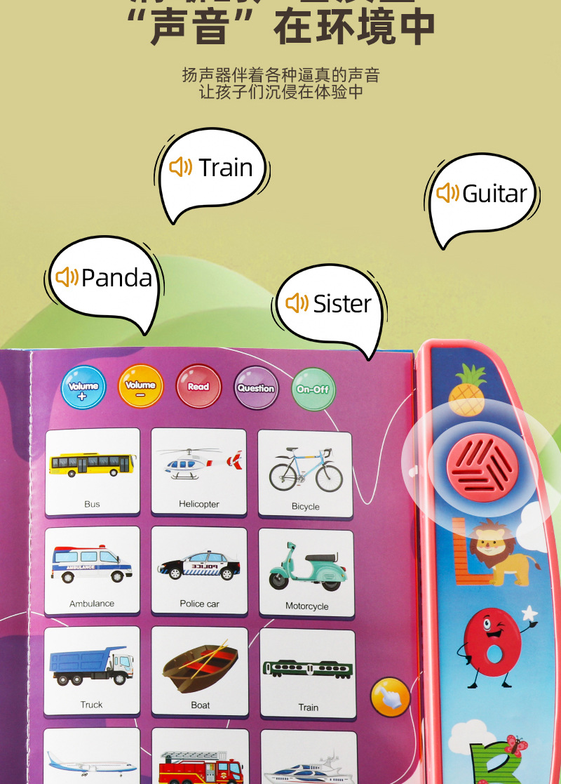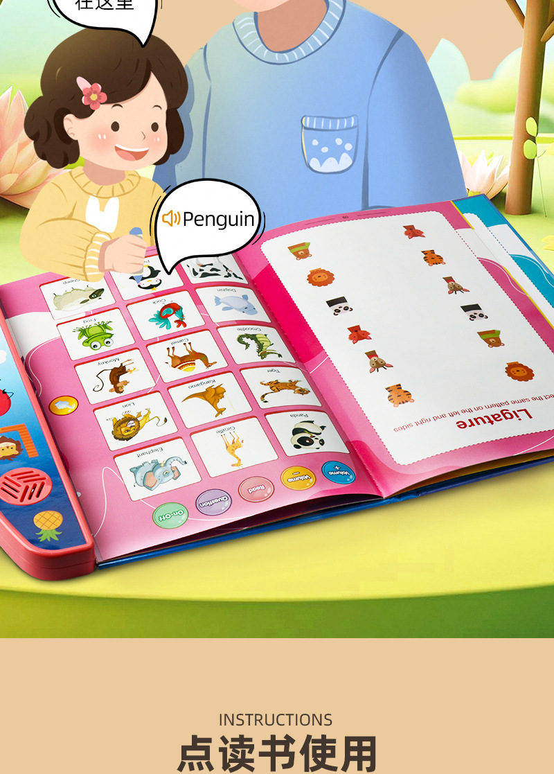 국경 간 어린이 조기 교육 오디오 이야기 책 깨달음 영어 철자 문자 단어 백과 사전 포인트 읽기 장난감 도매스토어 가기