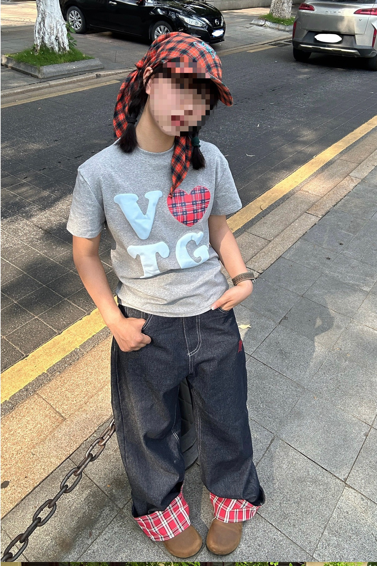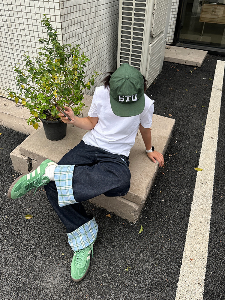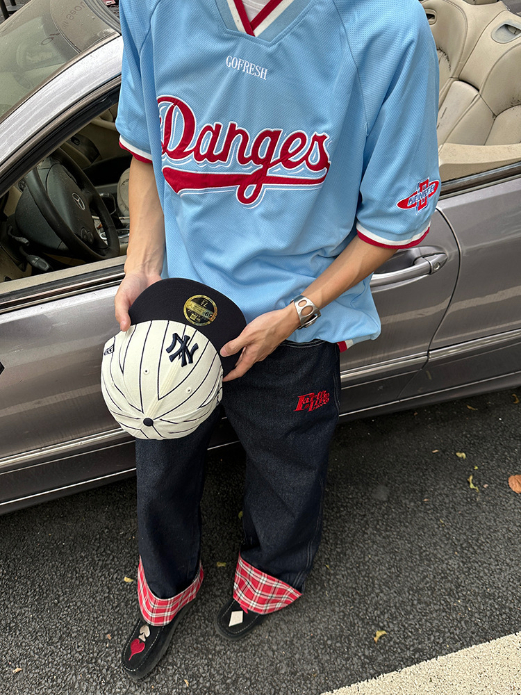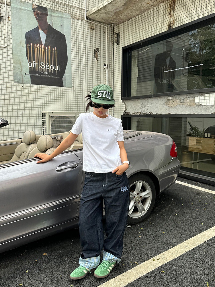 미국식 격자 무늬 바느질 컬 청바지 남자 가을 새로운 넓은 다리 스트레이트 느슨한 고급 커플 긴 바지