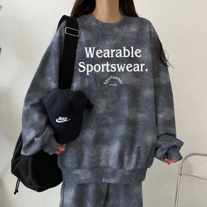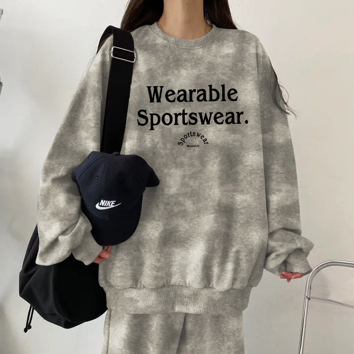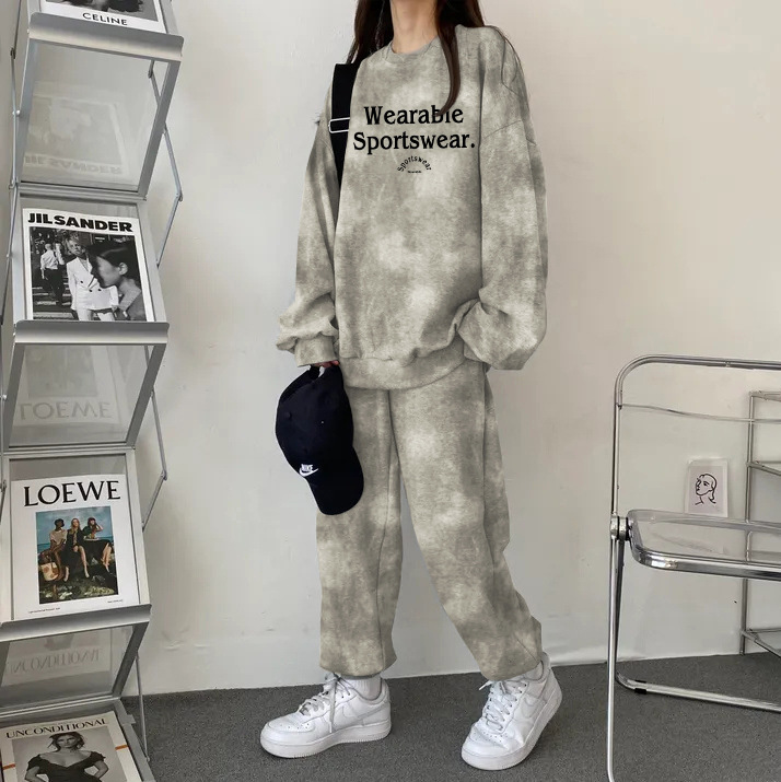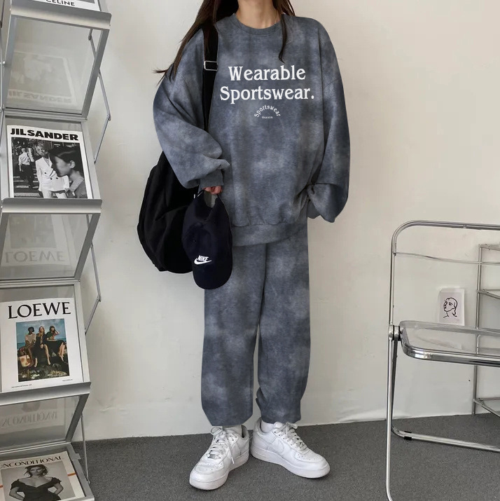 대외 무역 세트 여성 얇은 한국식 운동복 가을과 겨울 기모 두껍게 느슨한 패셔너블 캐주얼 투피스 세트스토어 가기