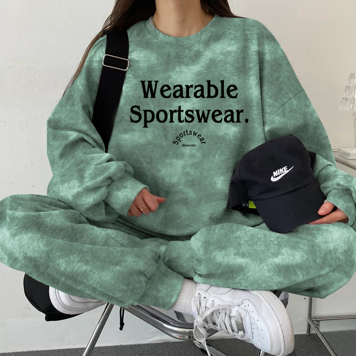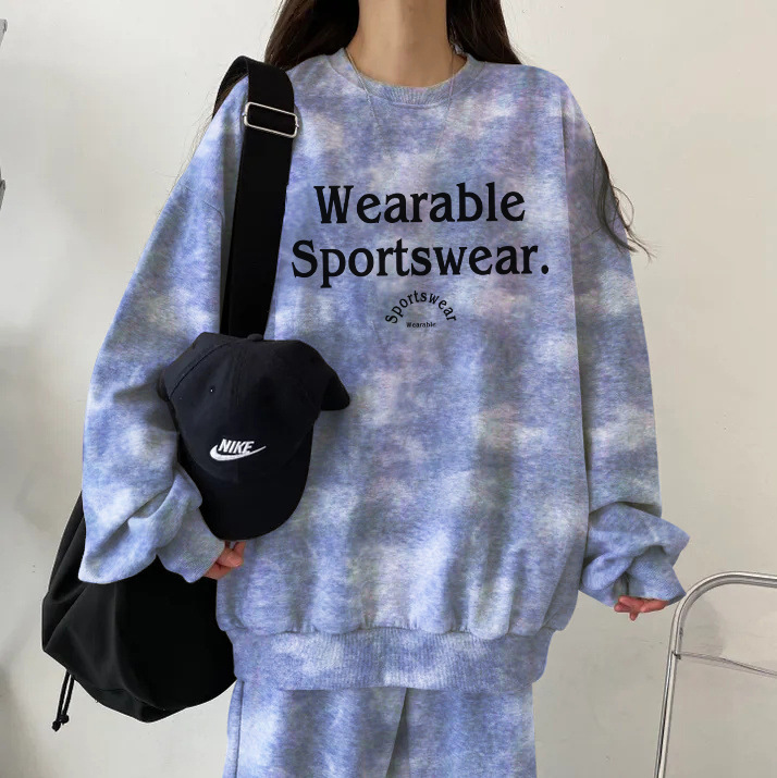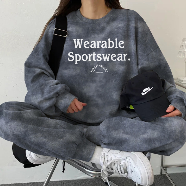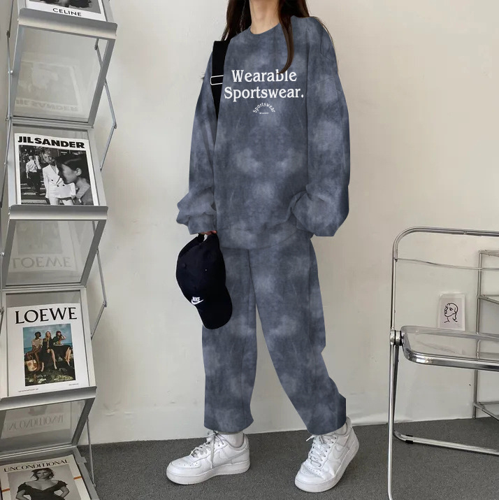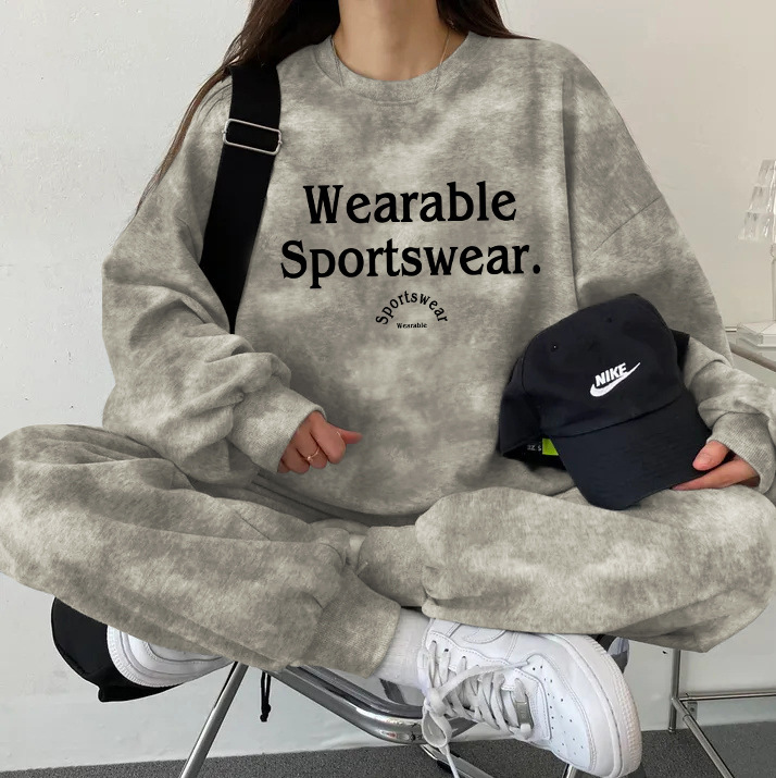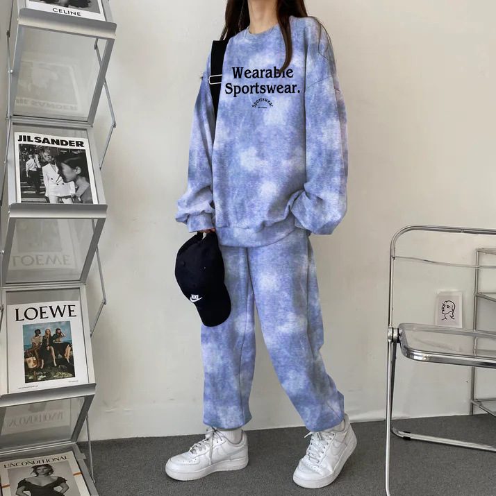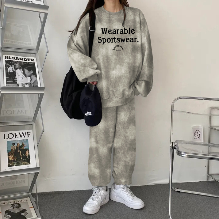 대외 무역 세트 여성 얇은 한국식 운동복 가을과 겨울 기모 두껍게 느슨한 패셔너블 캐주얼 투피스 세트