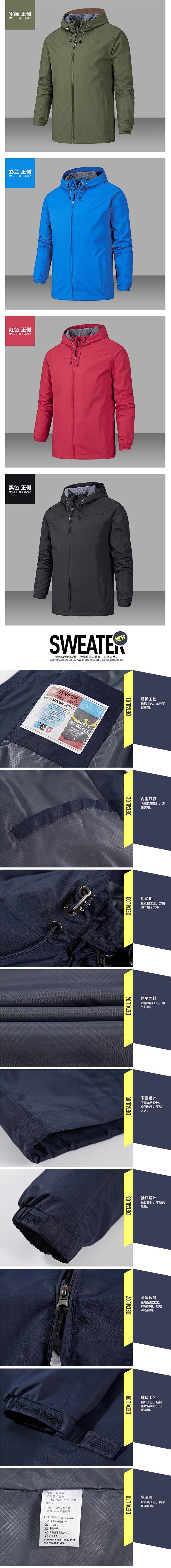 남성용 봄과 가을 후드 방풍 및 방비 등산 세트 남성용 얇은 로고 재킷 솔리드 컬러 재킷 여성용