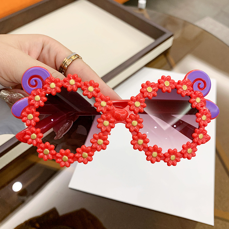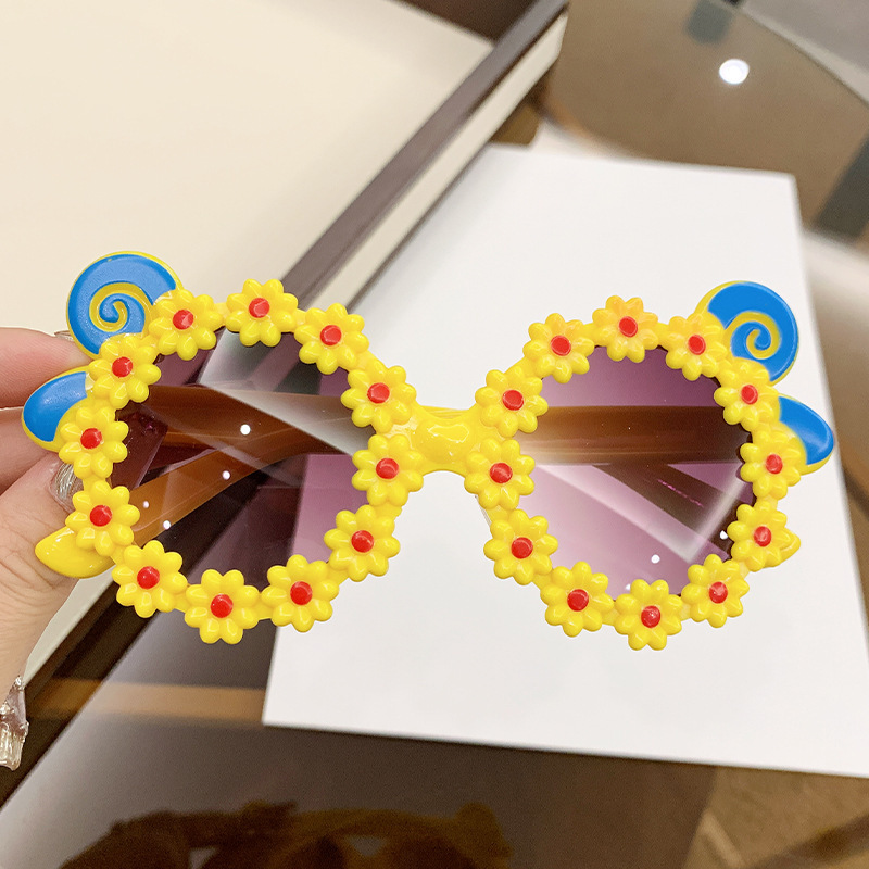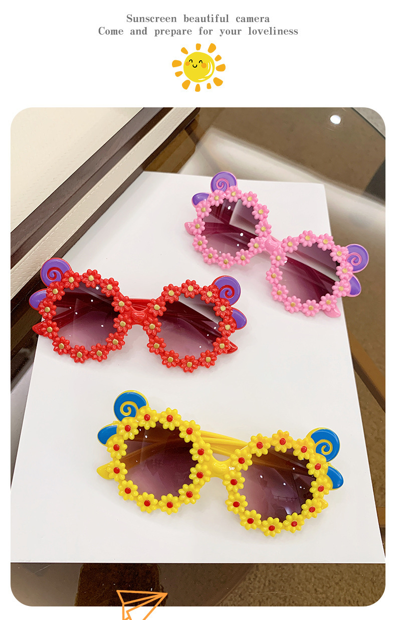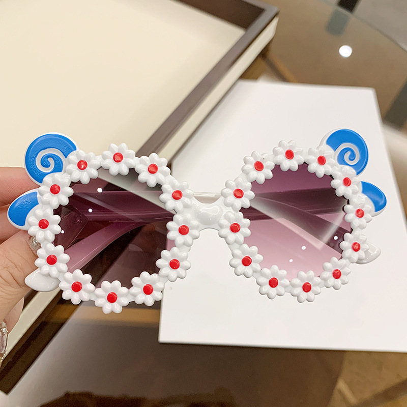 새로운 작은 데이지 어린이 선글라스 귀여운 아기 유행 선글라스 소년과 소녀 안티 UV 꽃 안경 파티