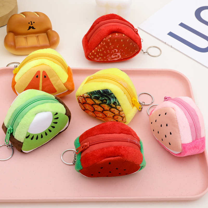 만화 어린이 휴일 선물 창조적 인 봉제 3 차원 삼각형 과일 동전 지갑 동전 가방 키 가방 매달려 장식품