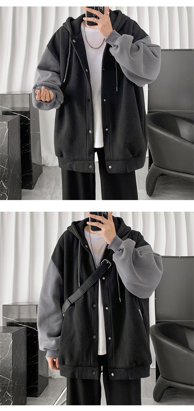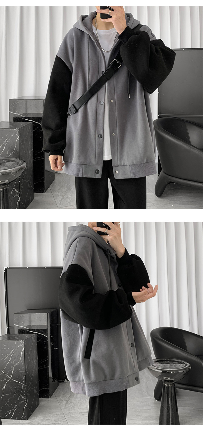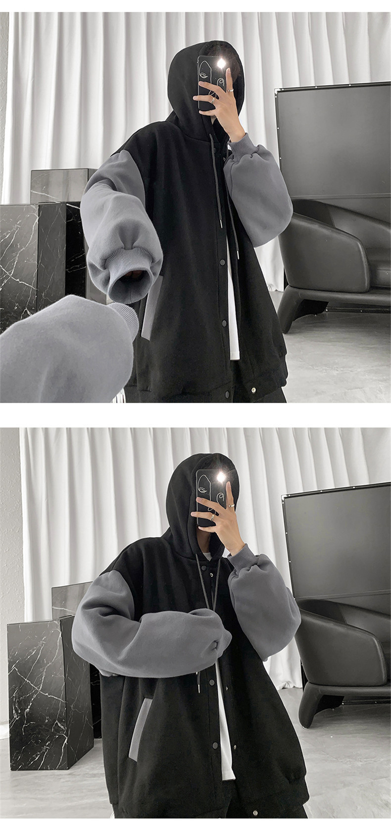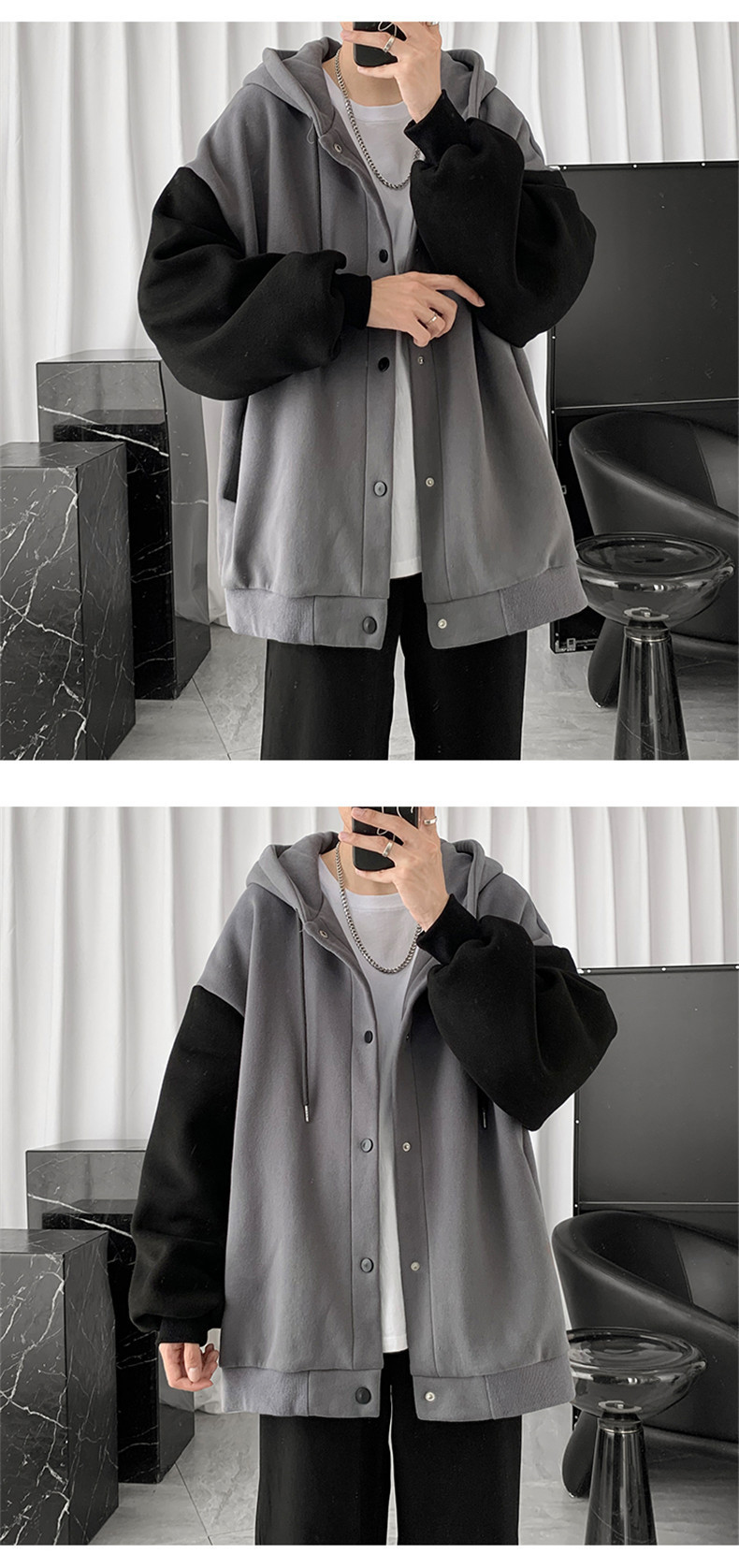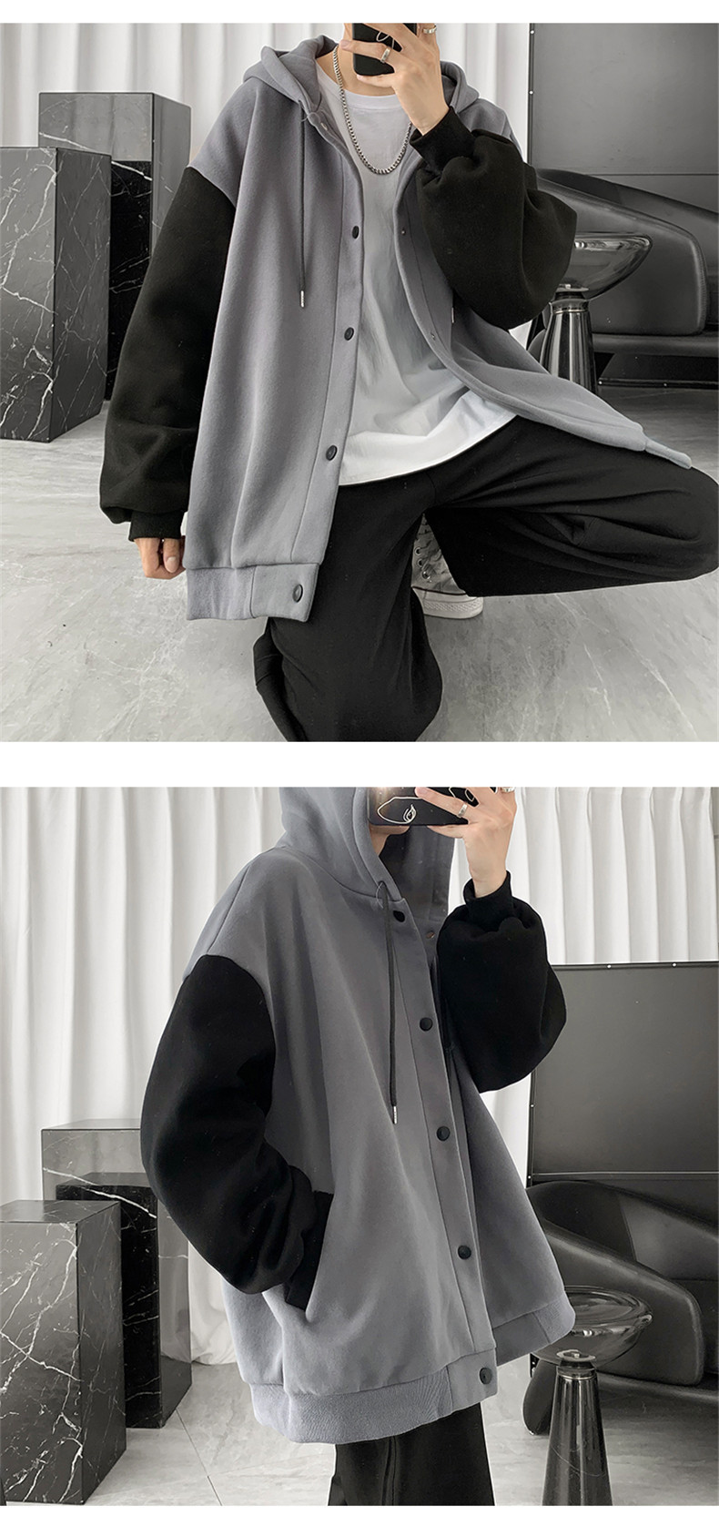 홍콩 스타일 캐주얼 카디건 재킷 남자 2023 가을 새 한국 스타일 유행 바느질 느슨한 후드 스웨터 커플 옷스토어 가기