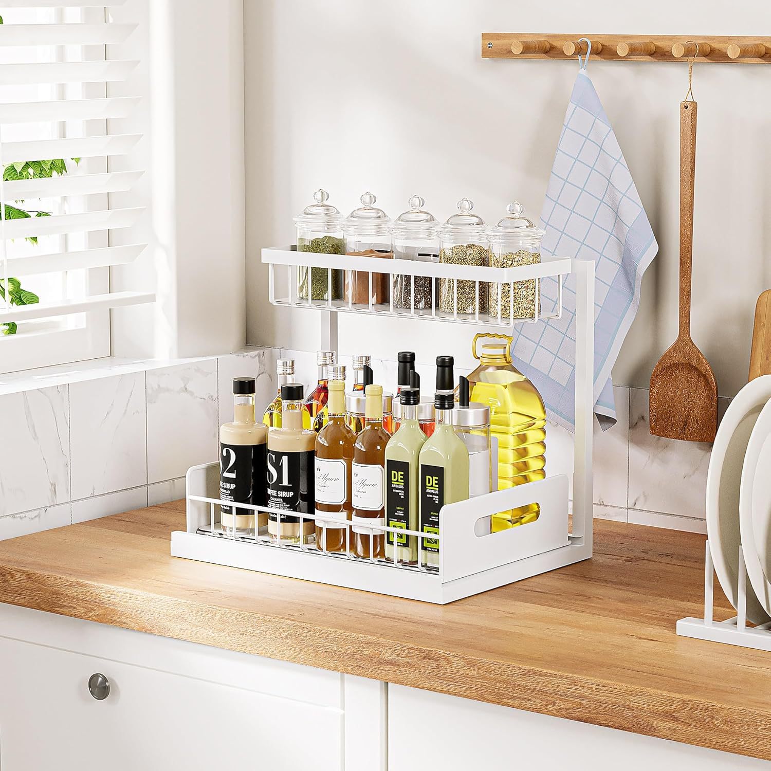즉시 배송 가능한 주방 수납 선반, 조미료 선반, 슬라이드형 캐비닛, 욕실 싱크대 아래 수납 선반, 가정용 정리 선반, 이중 레이어스토어 가기