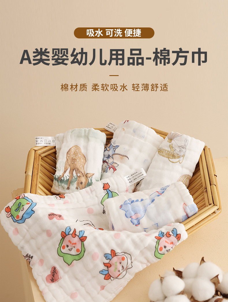 사각형 수건 유형 A 아기 침 수건 순면 거즈 귀여운 인쇄 신생아 얼굴 수건 어린이 작은 사각형 수건 도매스토어 가기