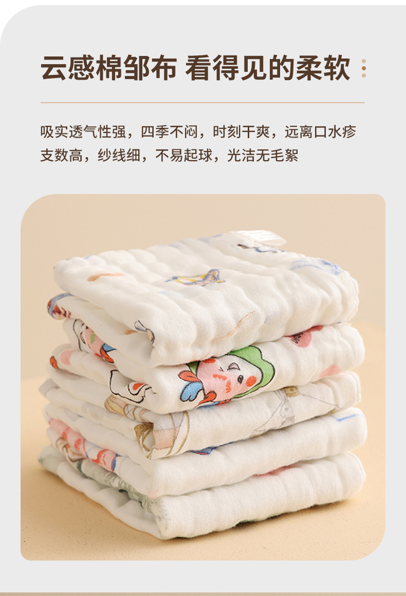 사각형 수건 유형 A 아기 침 수건 순면 거즈 귀여운 인쇄 신생아 얼굴 수건 어린이 작은 사각형 수건 도매