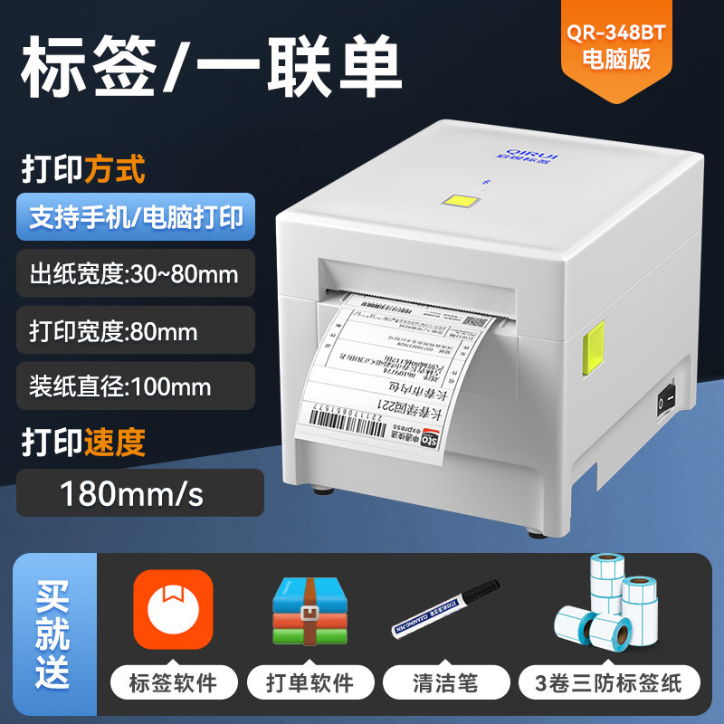 Qirui QR348 열전사 라벨 프린터, 식품 가격표, 의류 태그, 슈퍼마켓 밀크티 블루투스 라벨 프린터스토어 가기
