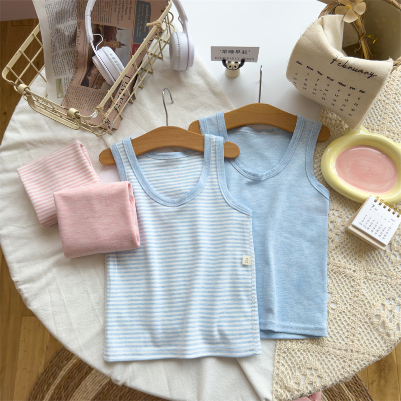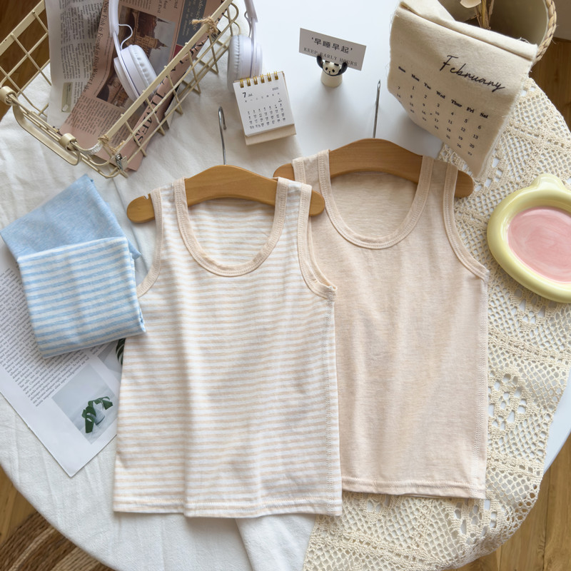 새로운 어린이 면화 조끼 뼈없는 부드러운 통기성 일본베이스 셔츠 유니섹스 민소매 파자마 조끼