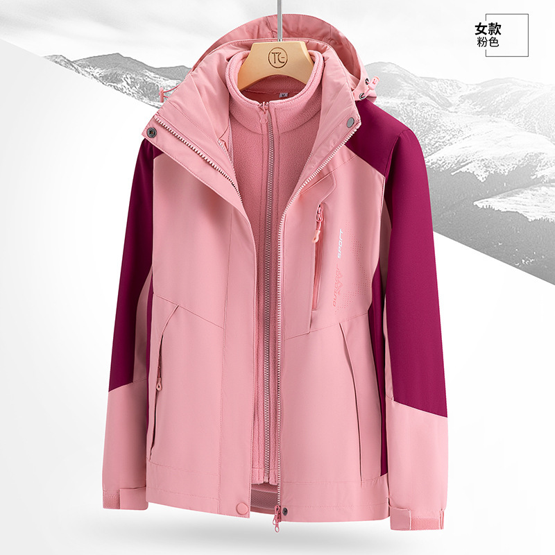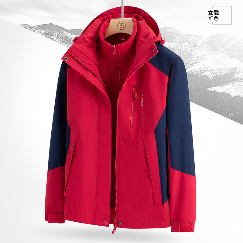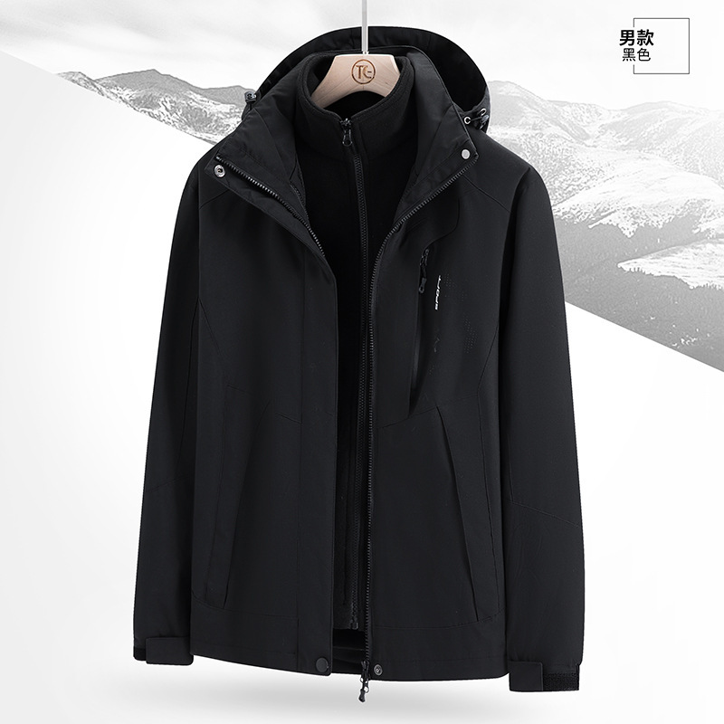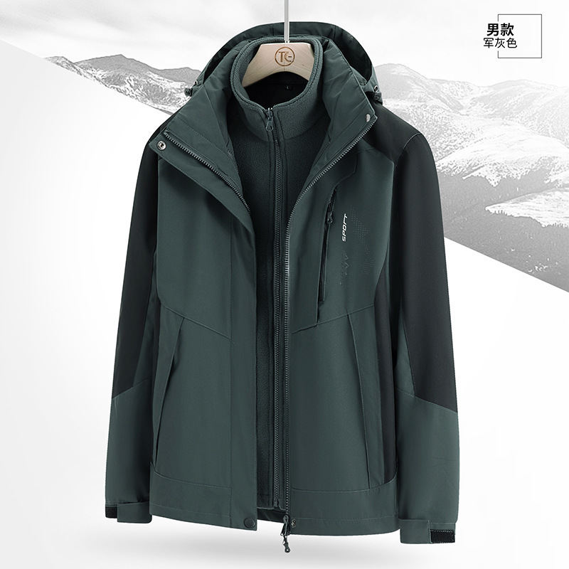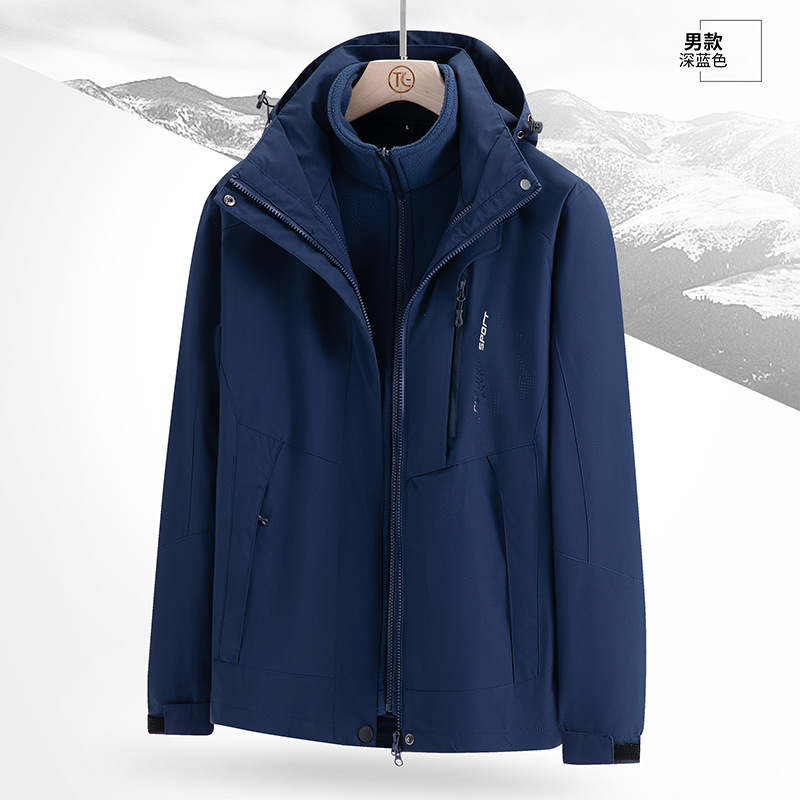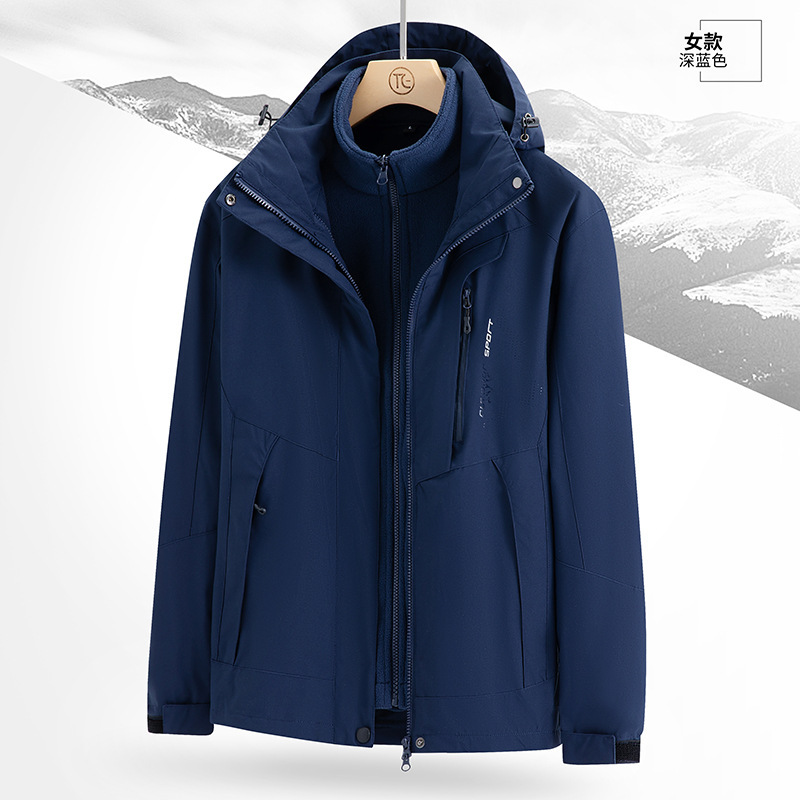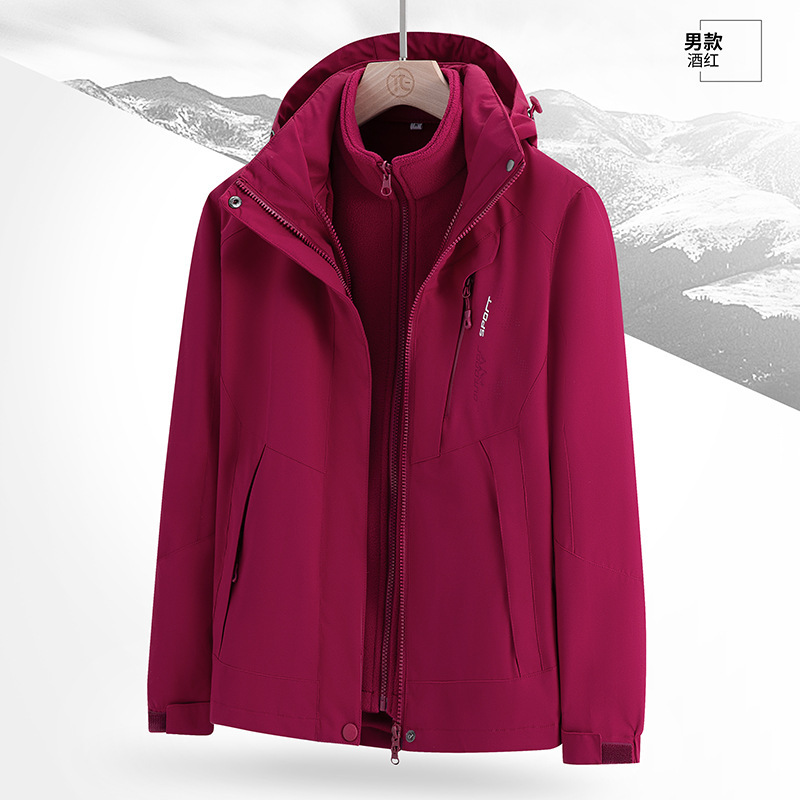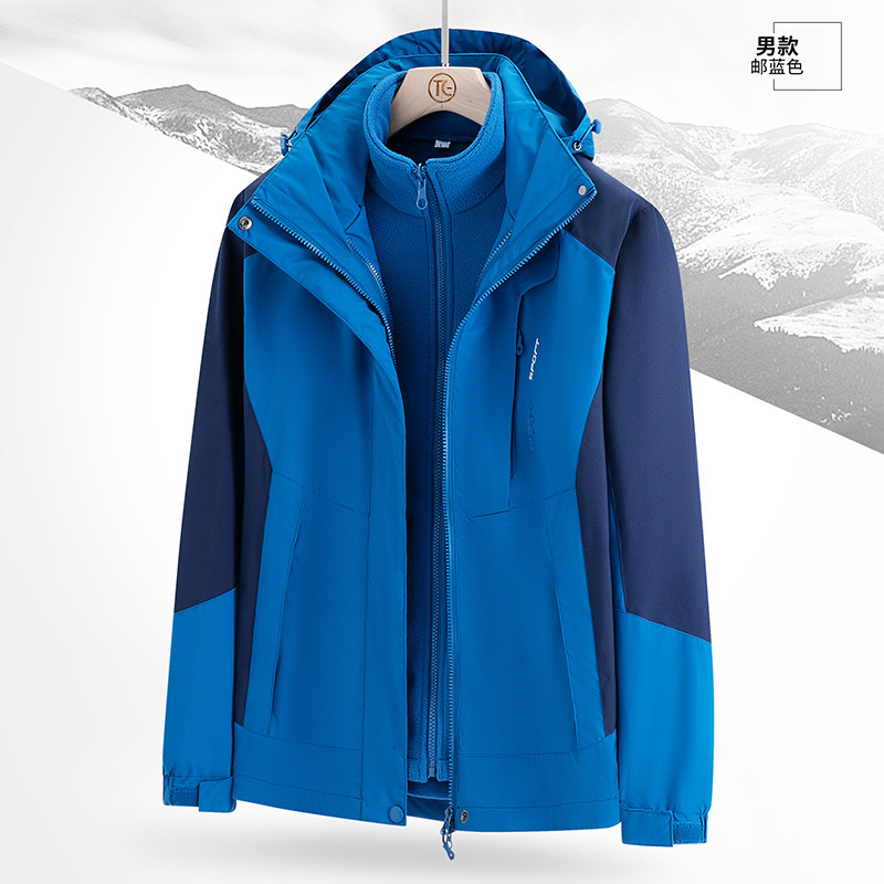 남녀 겨울 방풍 재킷 중년 기모 재킷 3 대 1 분리형 고급 등산 세트