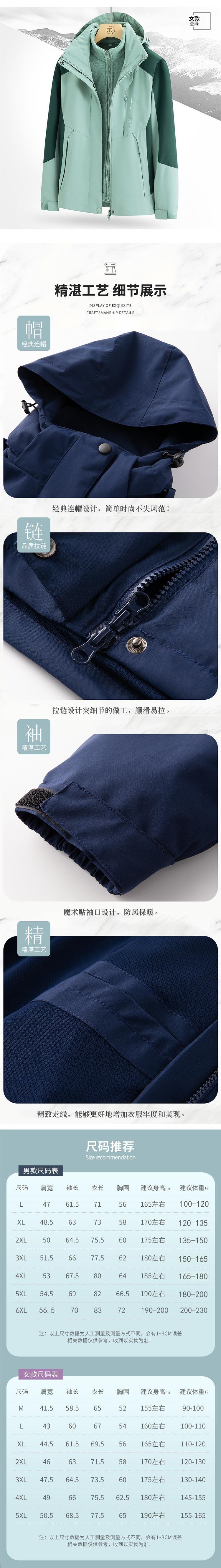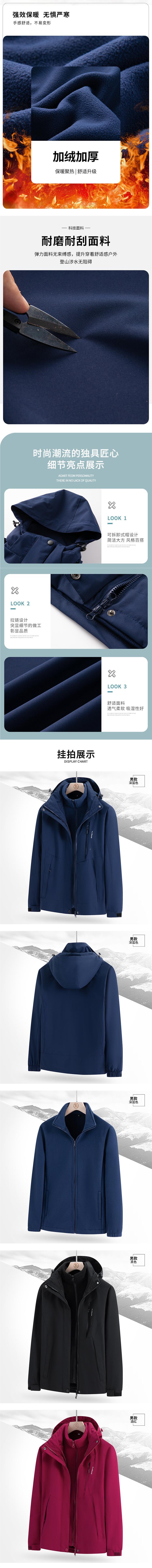 남녀 겨울 방풍 재킷 중년 기모 재킷 3 대 1 분리형 고급 등산 세트스토어 가기