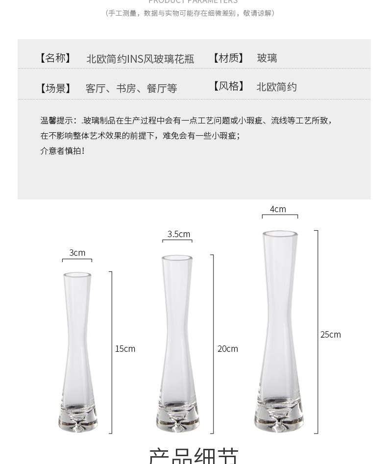수경 미니 플라워 호텔 장식품 싱글 인 스타일 꽃병 유리 투명 꽃 장식품 북유럽 작은스토어 가기
